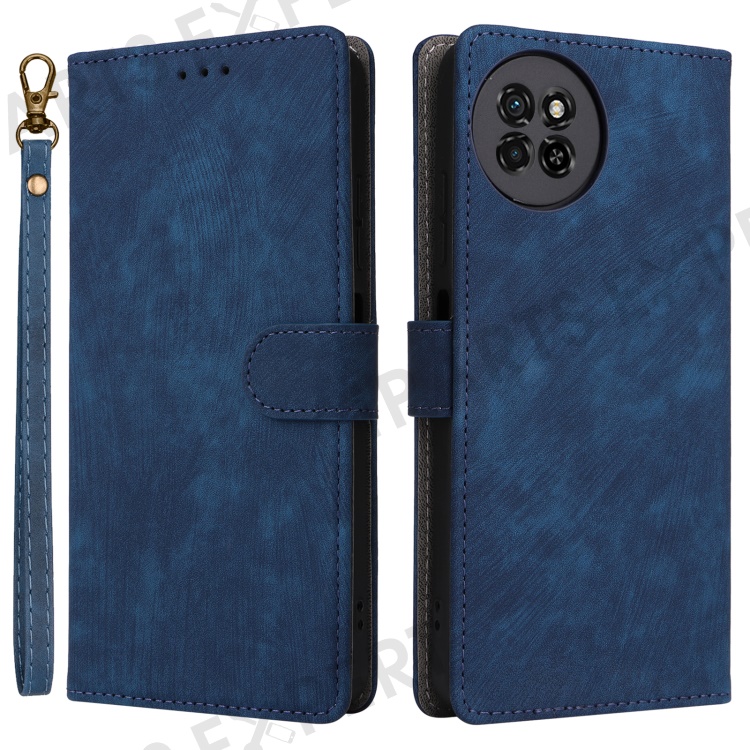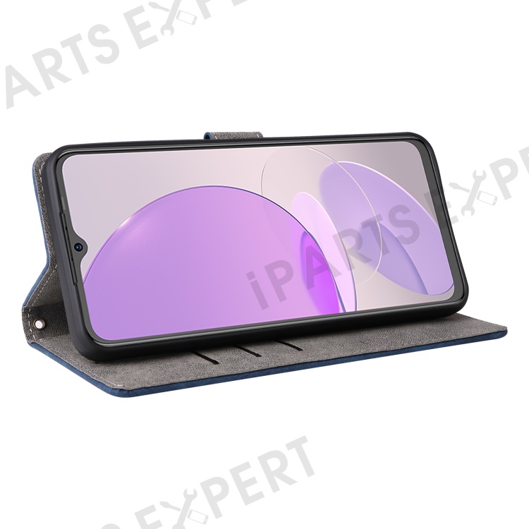PU Leather Case for itel S23 S665L , Stand RFID Blocking Wallet Full Protection Phone Cover with Strap - Blue