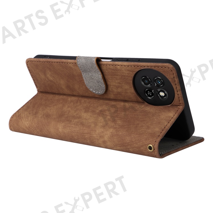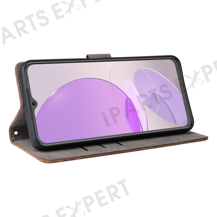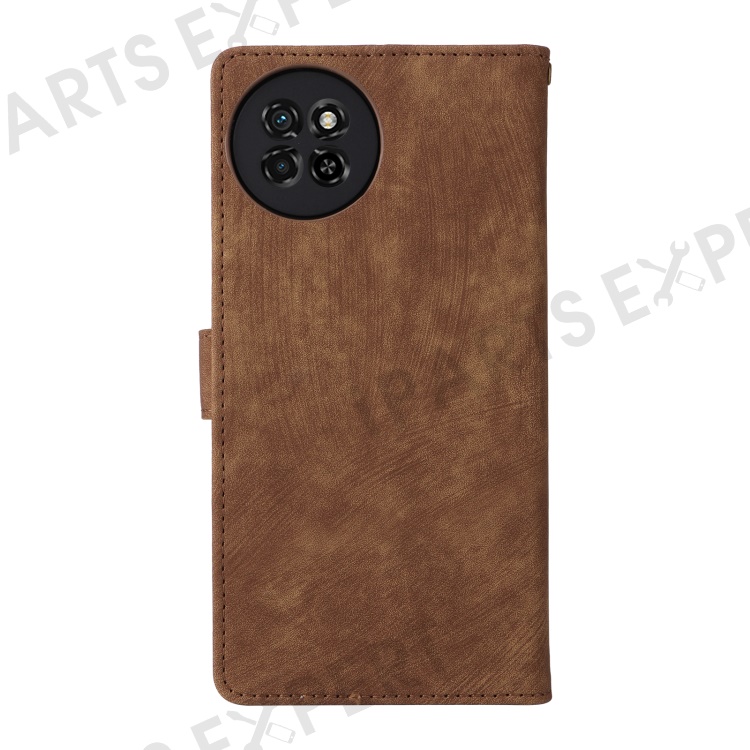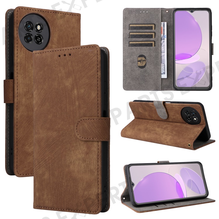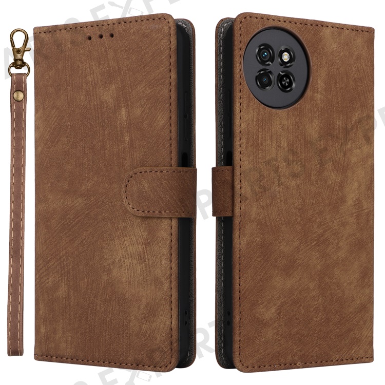 PU Leather Case for itel S23 S665L , Stand RFID Blocking Wallet Full Protection Phone Cover with Strap - Brown