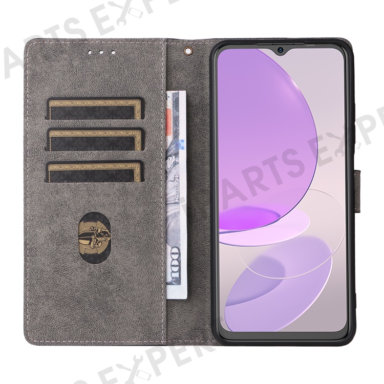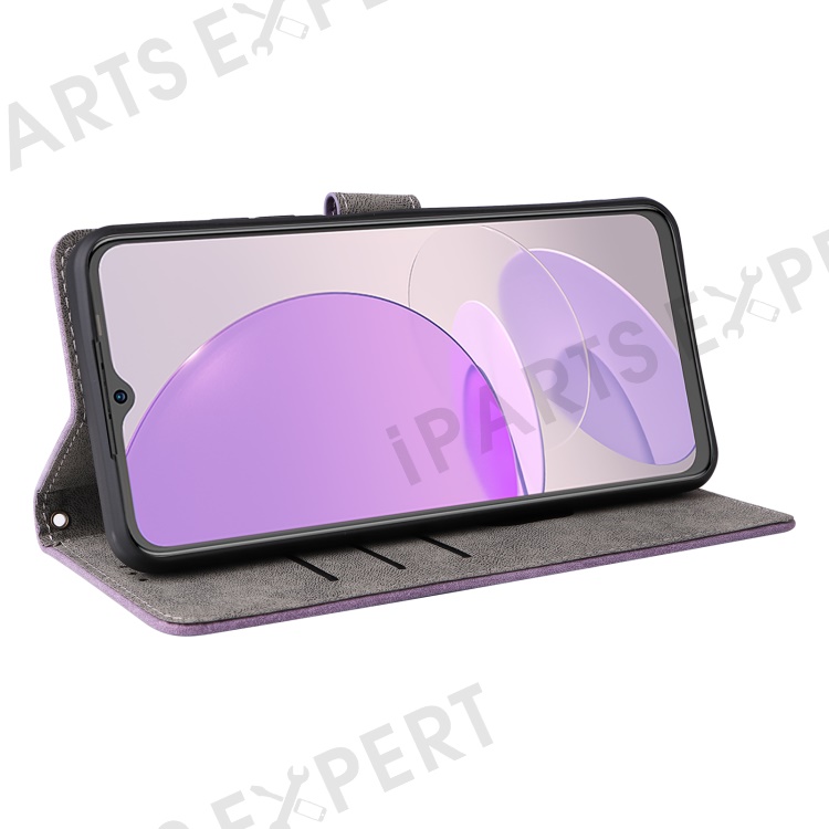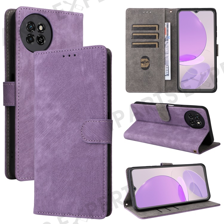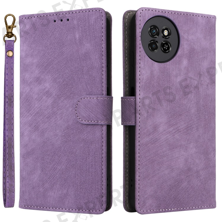 PU Leather Case for itel S23 S665L , Stand RFID Blocking Wallet Full Protection Phone Cover with Strap - Purple