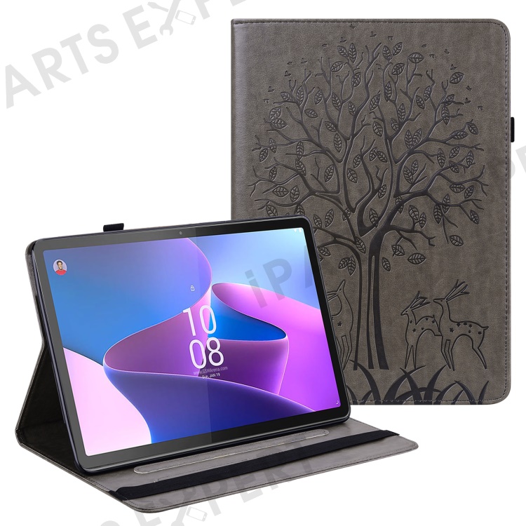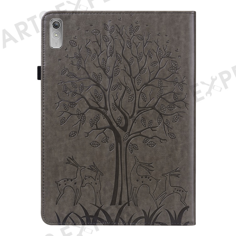 PU Leather Case for Lenovo Tab P11 Gen 2 Protective Cover Tree Deer Imprinted Stand Case with Card Slots - Grey
