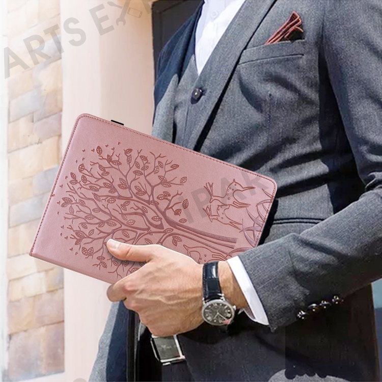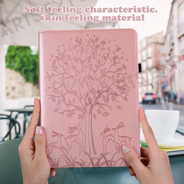 PU Leather Case for Lenovo Tab P11 Gen 2 Protective Cover Tree Deer Imprinted Stand Case with Card Slots - Rose Gold