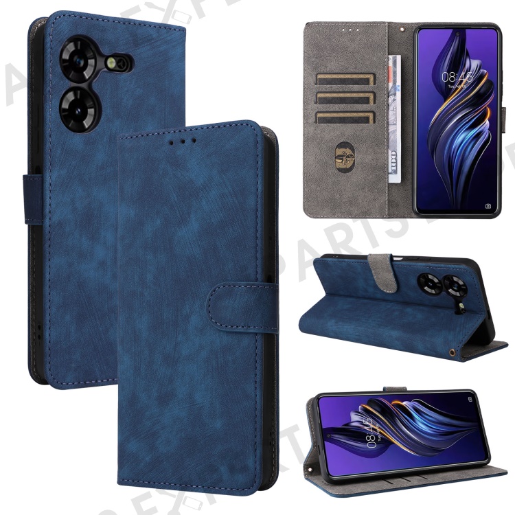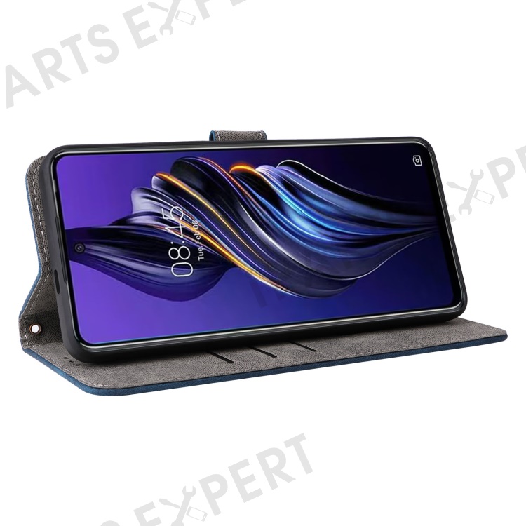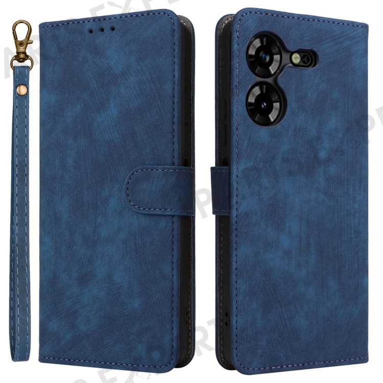 PU Leather Case for TECNO Pova 5 4G LH7N , Stand Shell RFID Blocking Wallet Phone Cover with Strap - Blue