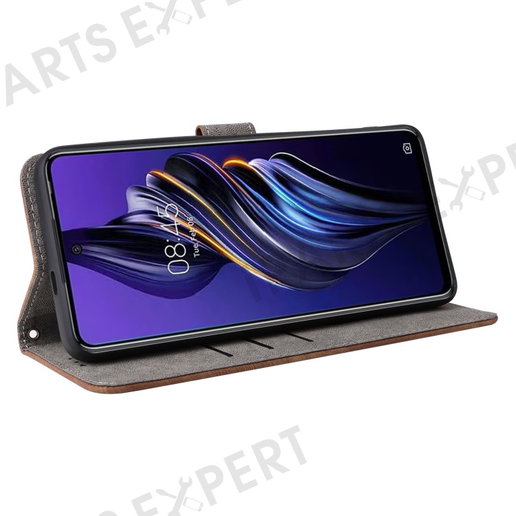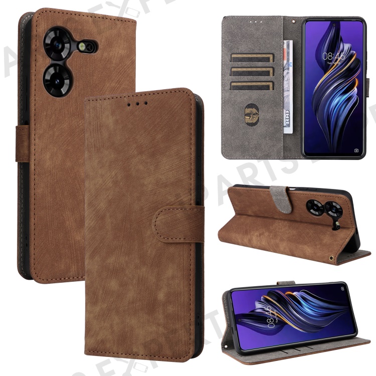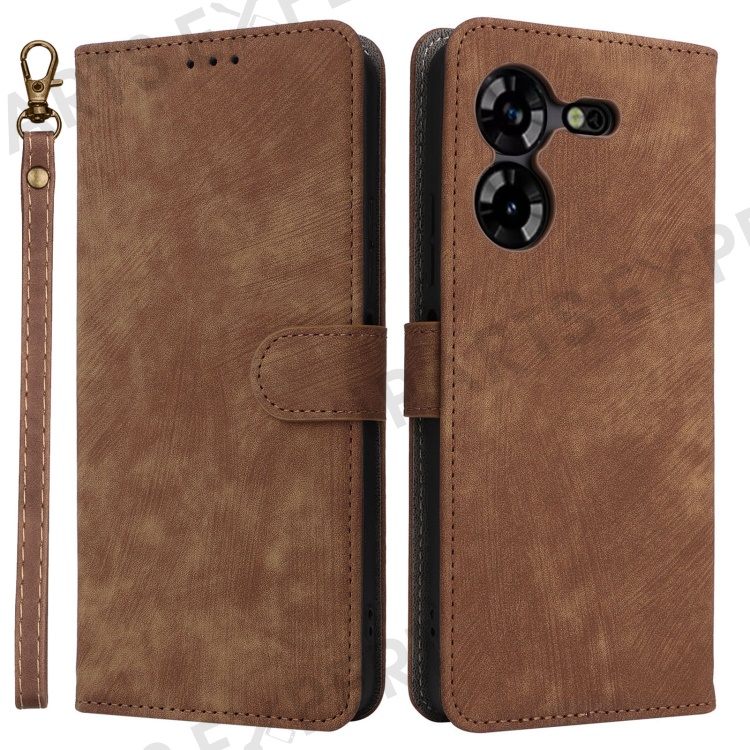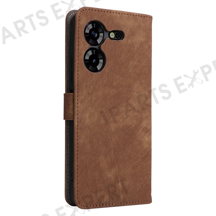 PU Leather Case for TECNO Pova 5 4G LH7N , Stand Shell RFID Blocking Wallet Phone Cover with Strap - Brown