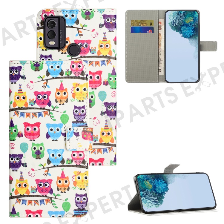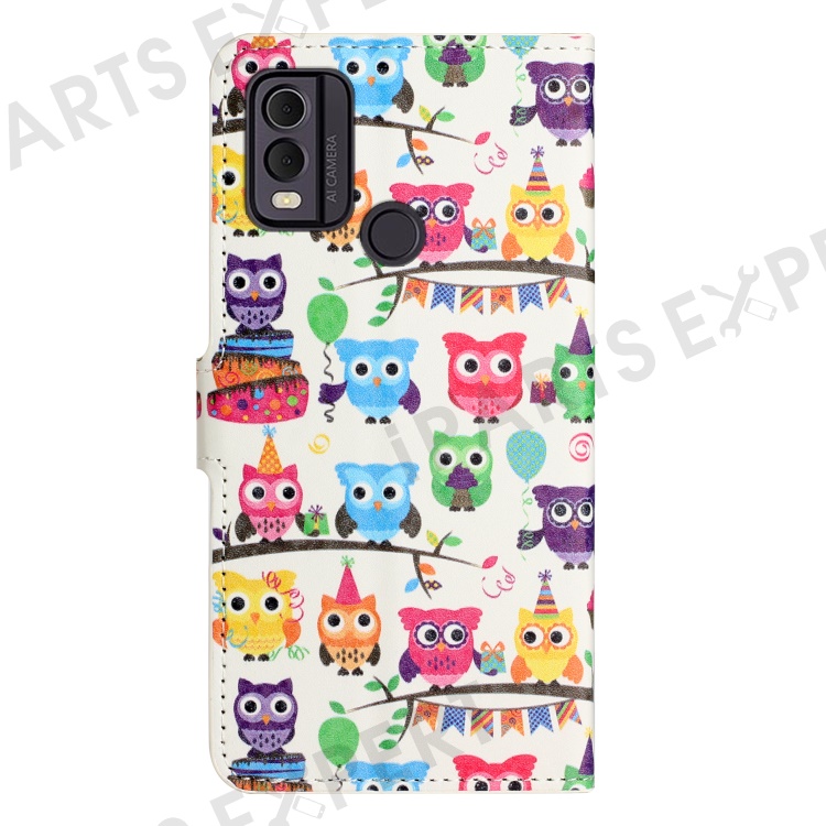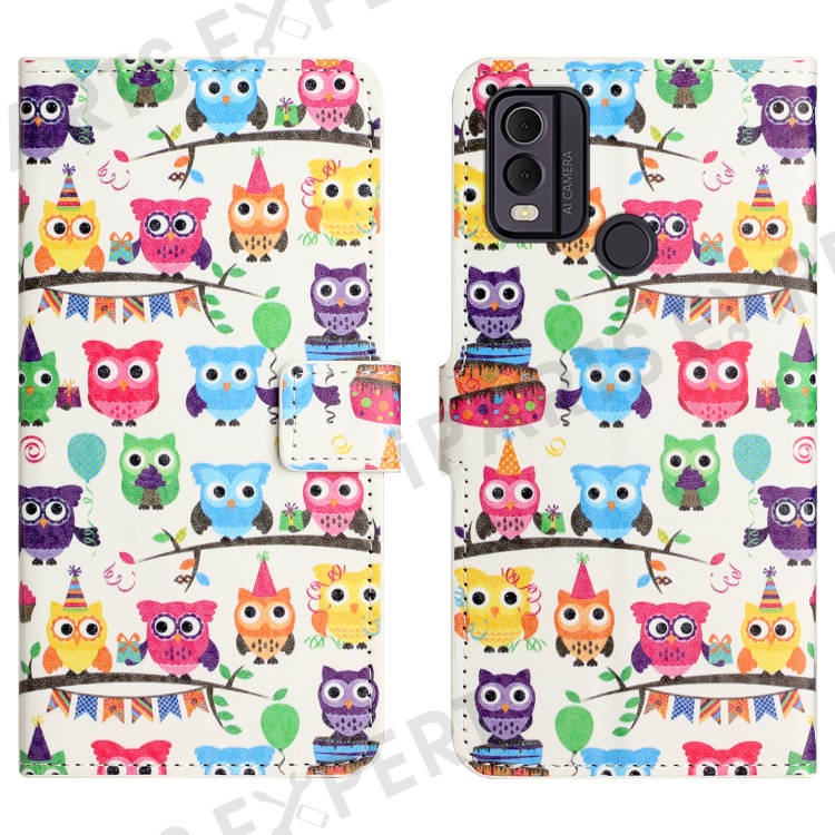 PU Leather Phone Case for Nokia C32 / C22 , Pattern Printing Wallet Stand Phone Cover - Owls Sticker