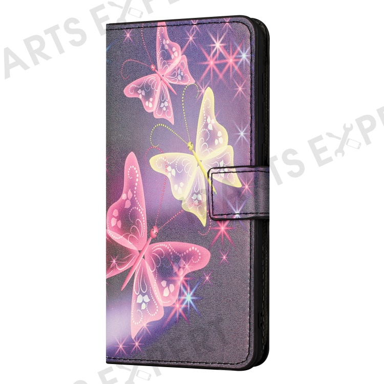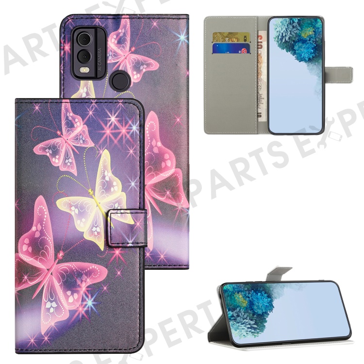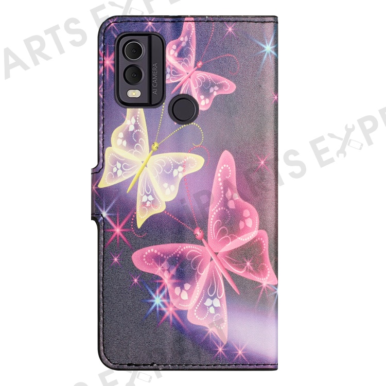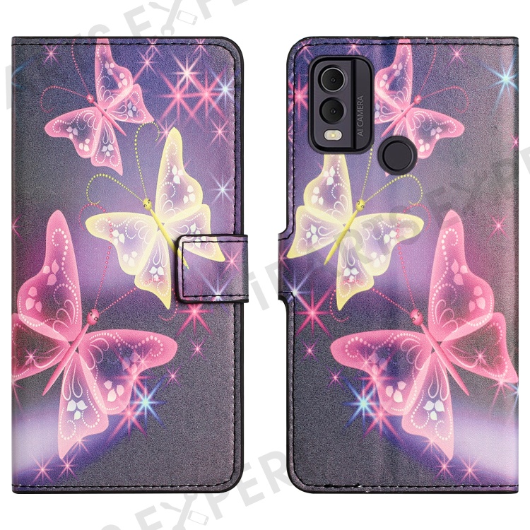 PU Leather Phone Case for Nokia C32 / C22 , Pattern Printing Wallet Stand Phone Cover - Sparkle Butterflies