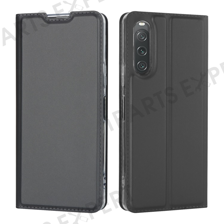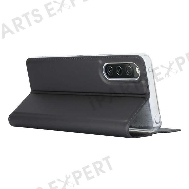 PU Leather Phone Case for Sony Xperia 10 V , Card Holder Stand Protective Phone Cover - Black