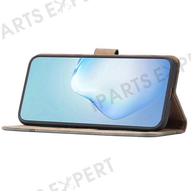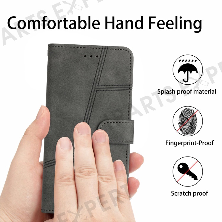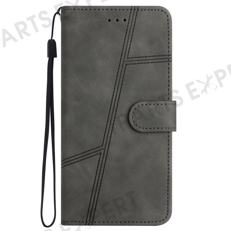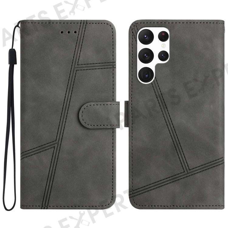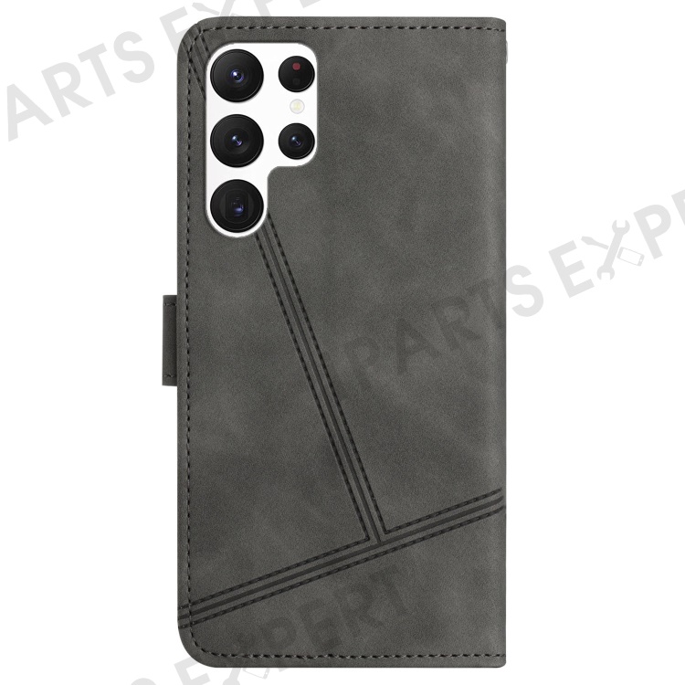 PU Leather Phone Cover for Samsung Galaxy S22 Ultra 5G, Skin-touch Feeling Lines Decor Retro Phone Case Stand Wallet - Grey