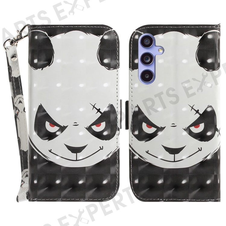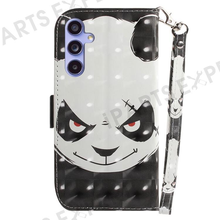 PU Leather Stand Filp Cover for Samsung Galaxy S23 FE , 3D Pattern Printing Wallet Phone Case with Strap - Angry Panda