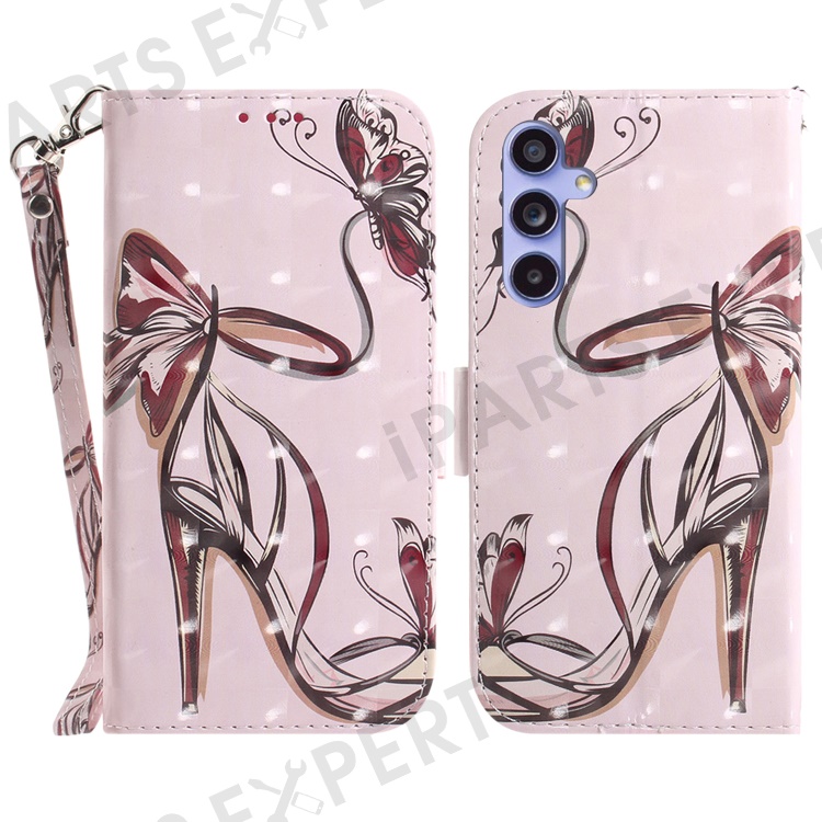 PU Leather Stand Filp Cover for Samsung Galaxy S23 FE , 3D Pattern Printing Wallet Phone Case with Strap - Butterfly High Heels