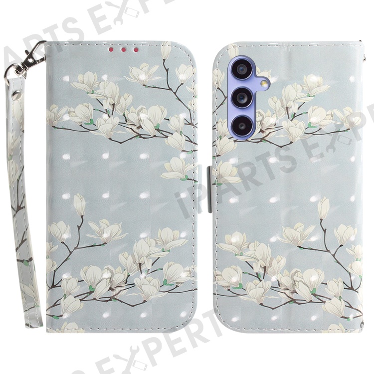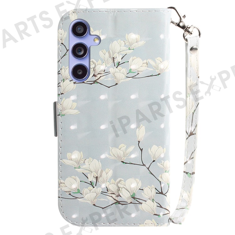 PU Leather Stand Filp Cover for Samsung Galaxy S23 FE , 3D Pattern Printing Wallet Phone Case with Strap - Magnolia