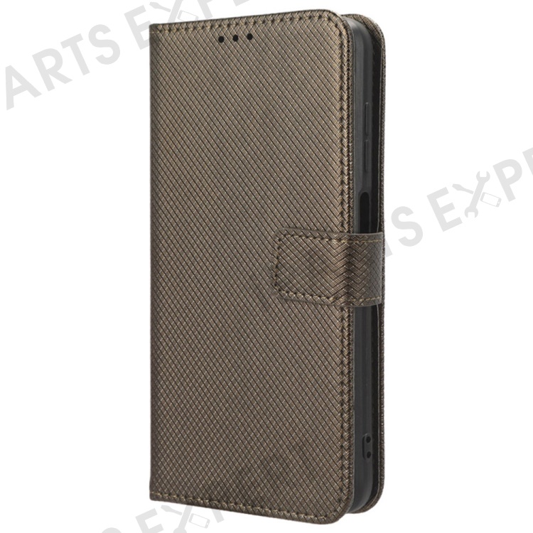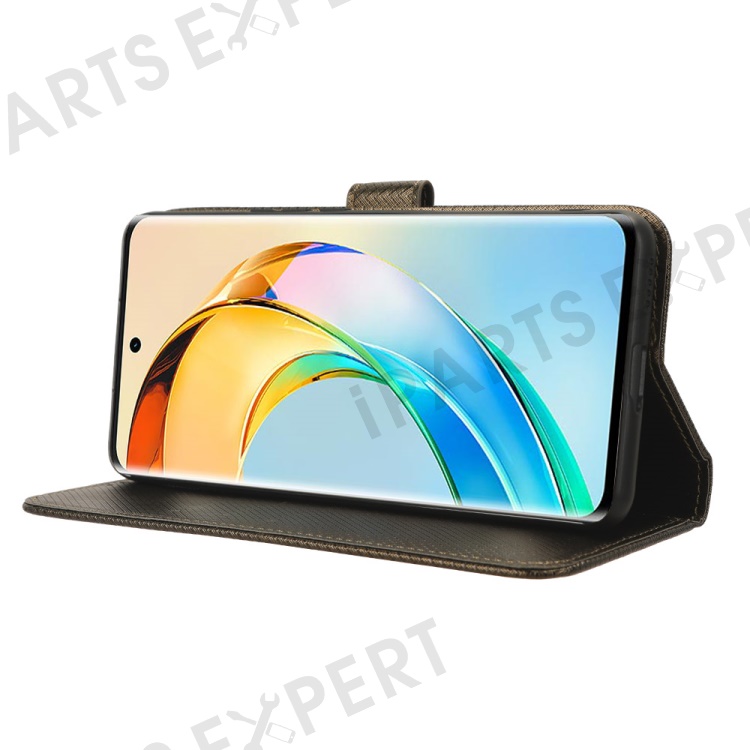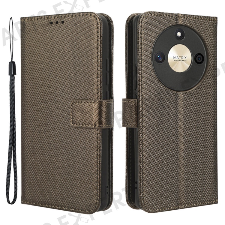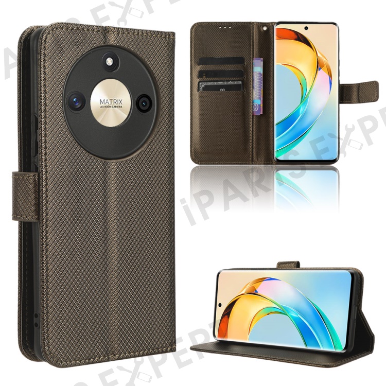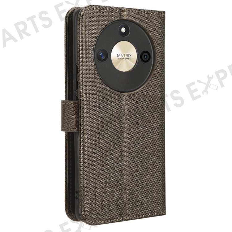 PU Leather Stand Phone Case For Honor X50 , Wallet Shockproof Diamond Texture Phone Cover - Brown