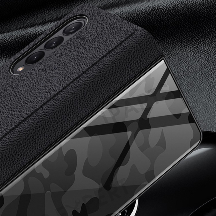 PU Leather + Tempered Glass + PC Phone Case Pattern Printed Stylish Protective Cover for Samsung Galaxy Z Fold3 5G/W22 5G - Camouflage/Black