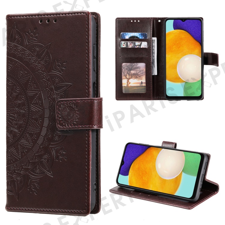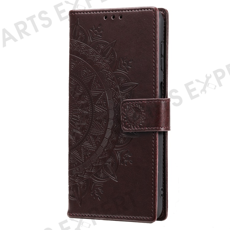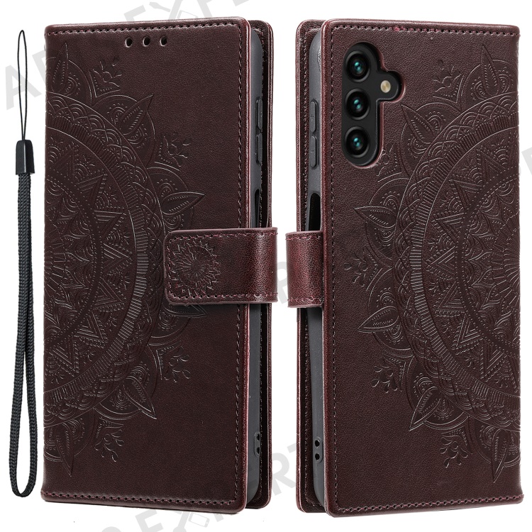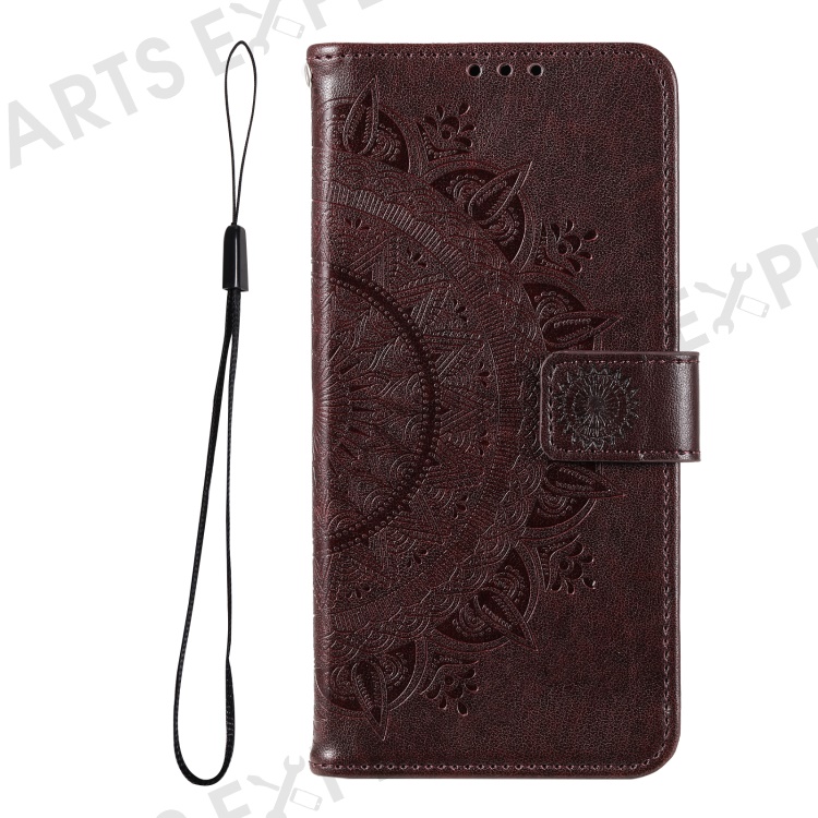 PU Leather Totem Mandala Imprint Wallet Case Stand Cover with Strap for Samsung Galaxy A13 5G / A04s 4G (164.7mm) - Brown