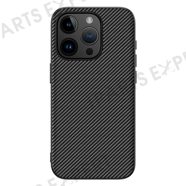 PU Leather+TPU Back Case for iPhone 15 Pro Max , Carbon Fiber Texture Shockproof Phone Cover - Carbon Fiber / Black