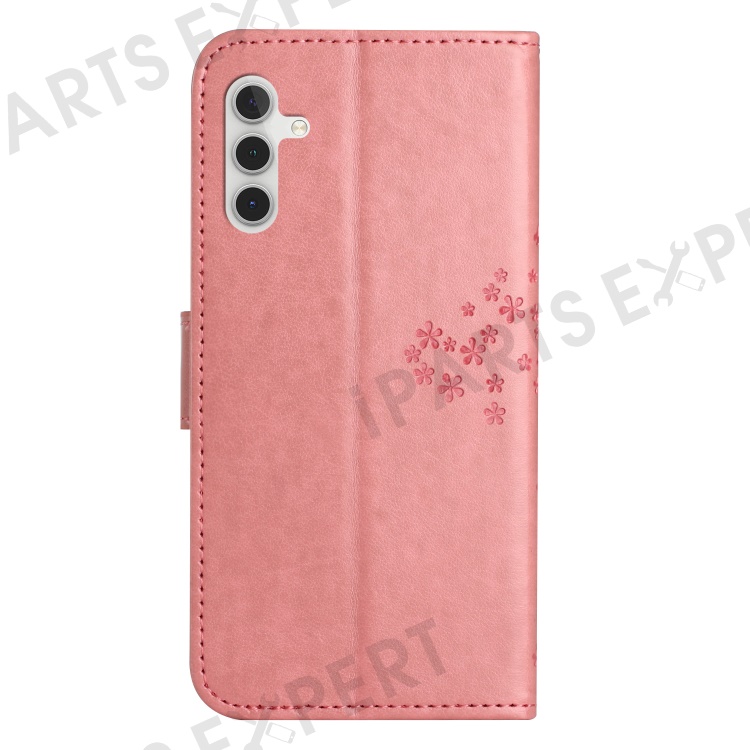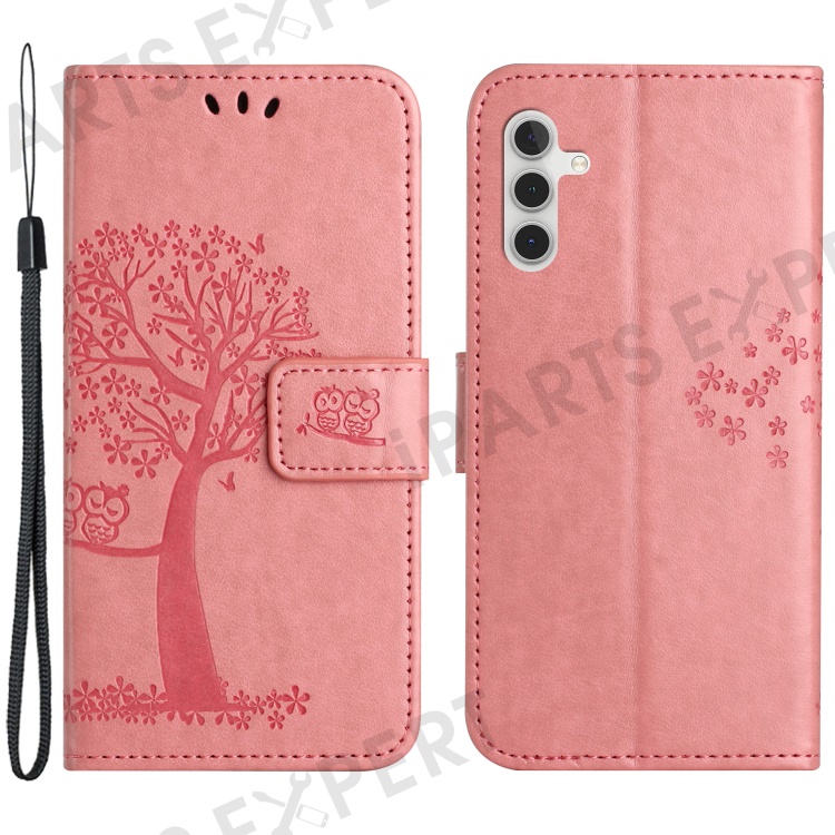 PU For Samsung Galaxy A25 5G (Global) (161.0 x 76.5 x 8.3mm) Owl Tree Imprinted Foldable Stand Phone Cover - Pink