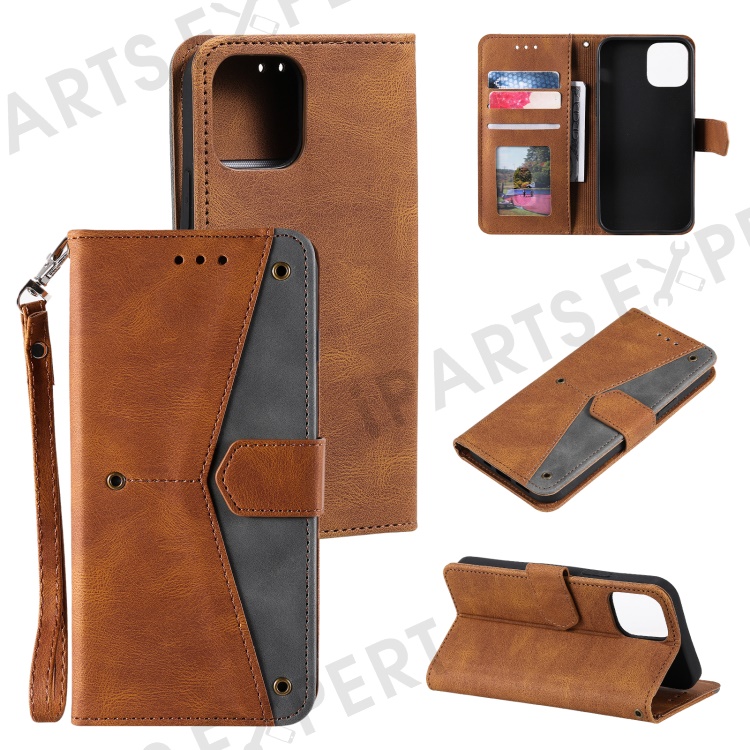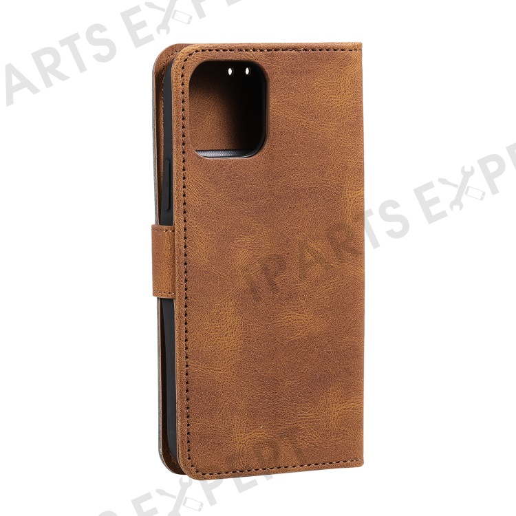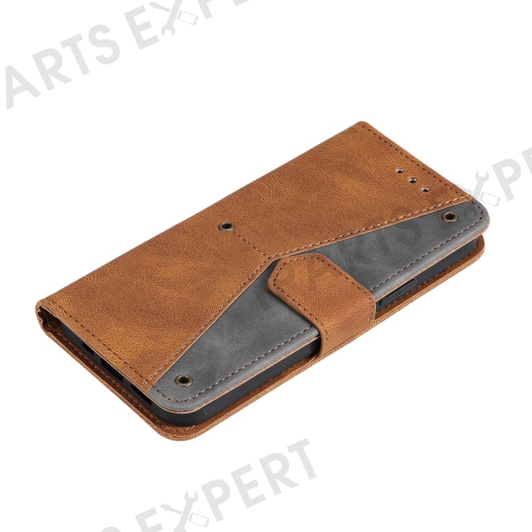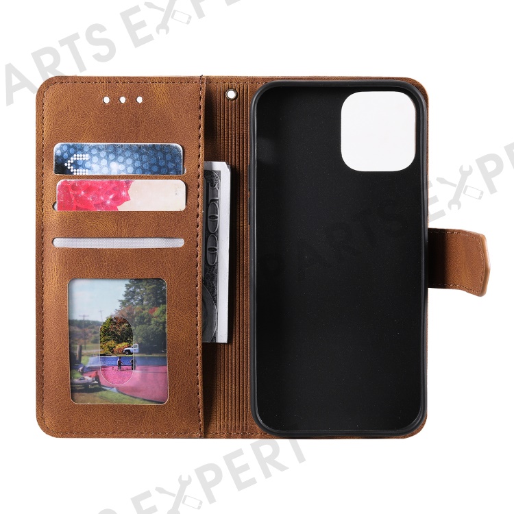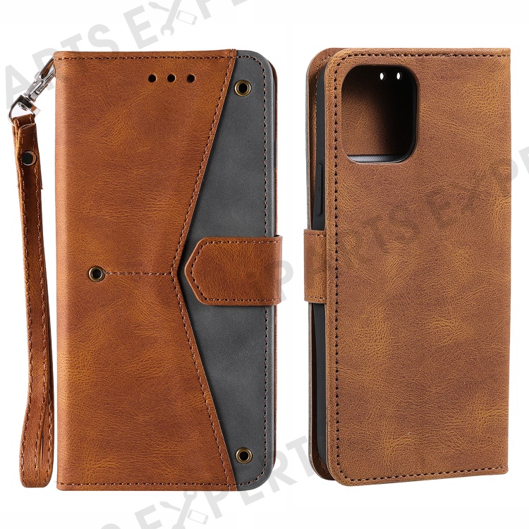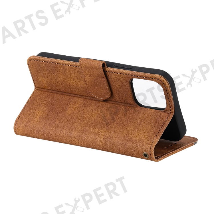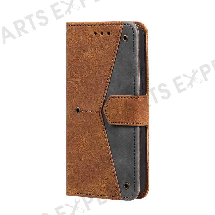 PU Leather Wallet Phone Case Rivet Decor Cover Stand Case Cover for iPhone 13 Pro Max 6.7 inch - Brown