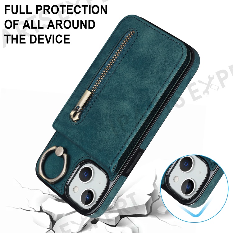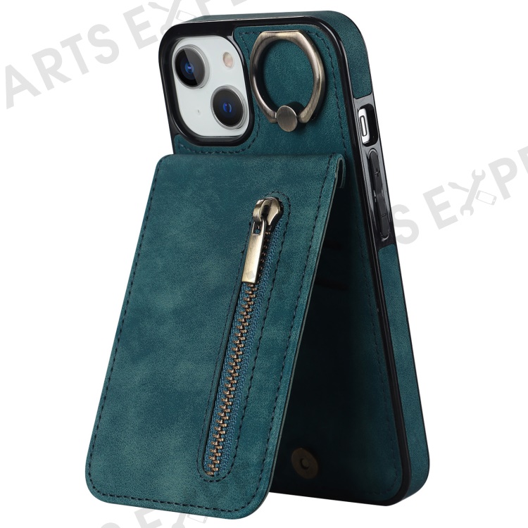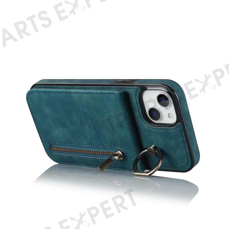 PU+TPU Cover for iPhone 13 mini , Ring Kickstand RFID Blocking Cell Phone Case - Blue