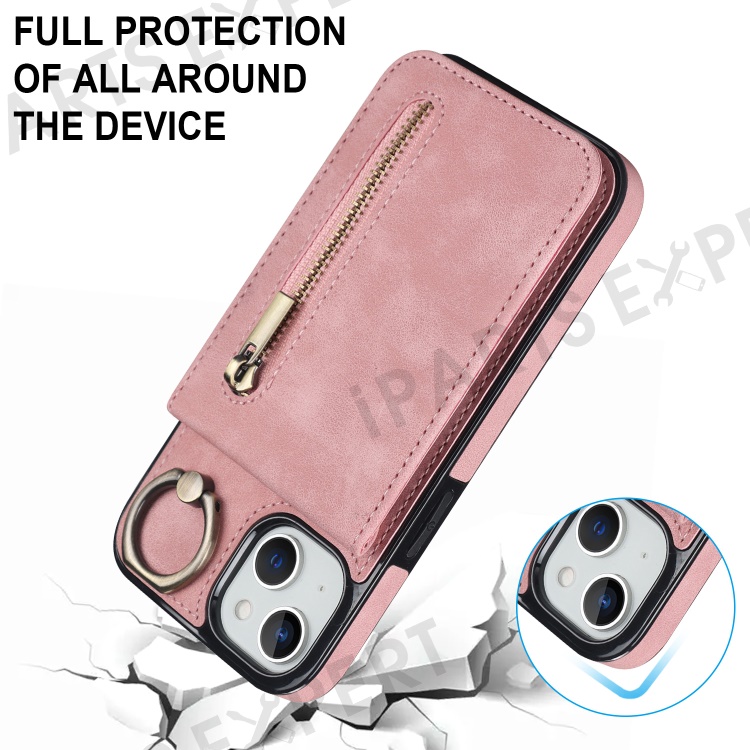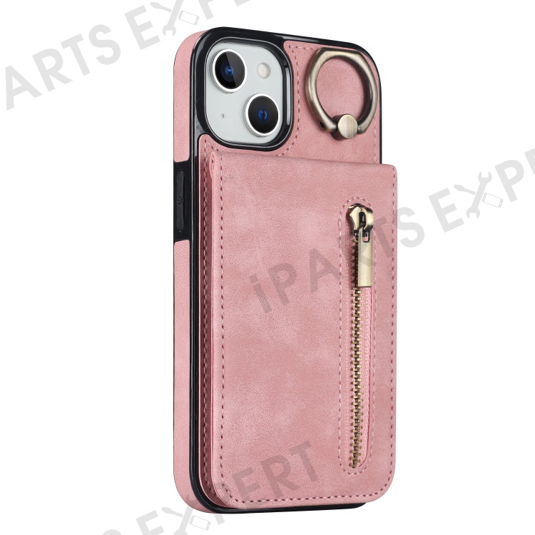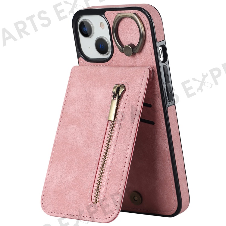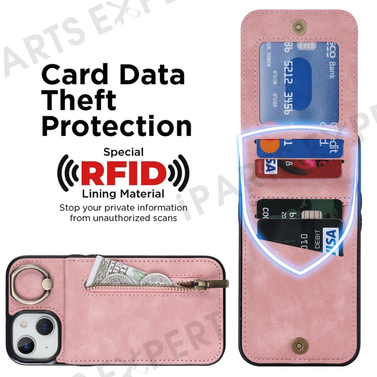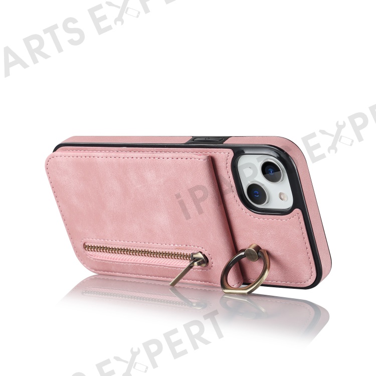 PU+TPU Cover for iPhone 13 mini , Ring Kickstand RFID Blocking Cell Phone Case - Pink