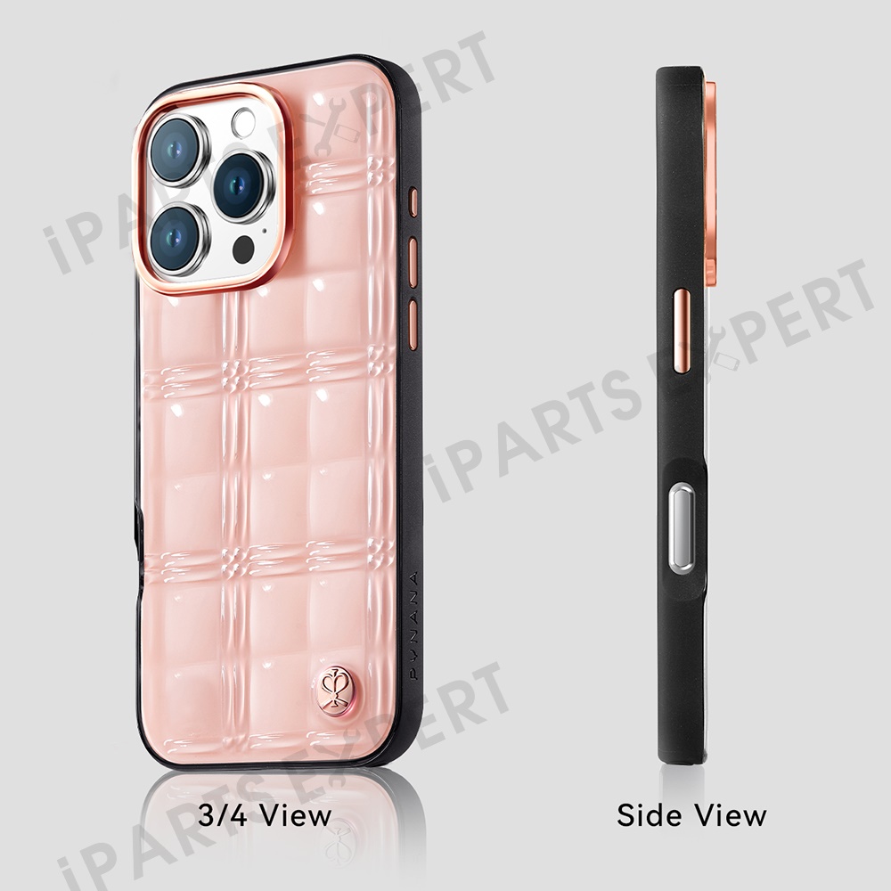 PYNANA PN-16FG4 For iPhone 16 Pro Max Case PC TPU Glossy Phone Cover with Beads Chain - Pink