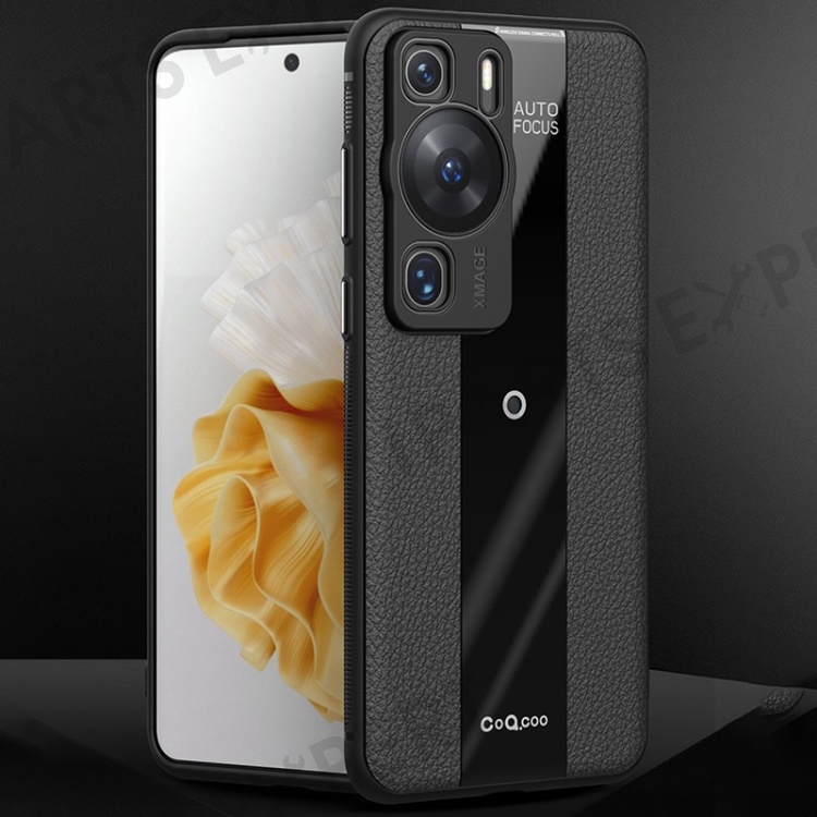 Q.COO For Huawei P60 Art Case Leather+TPU+Acrylic Lightweight Smartphone Shell - Black