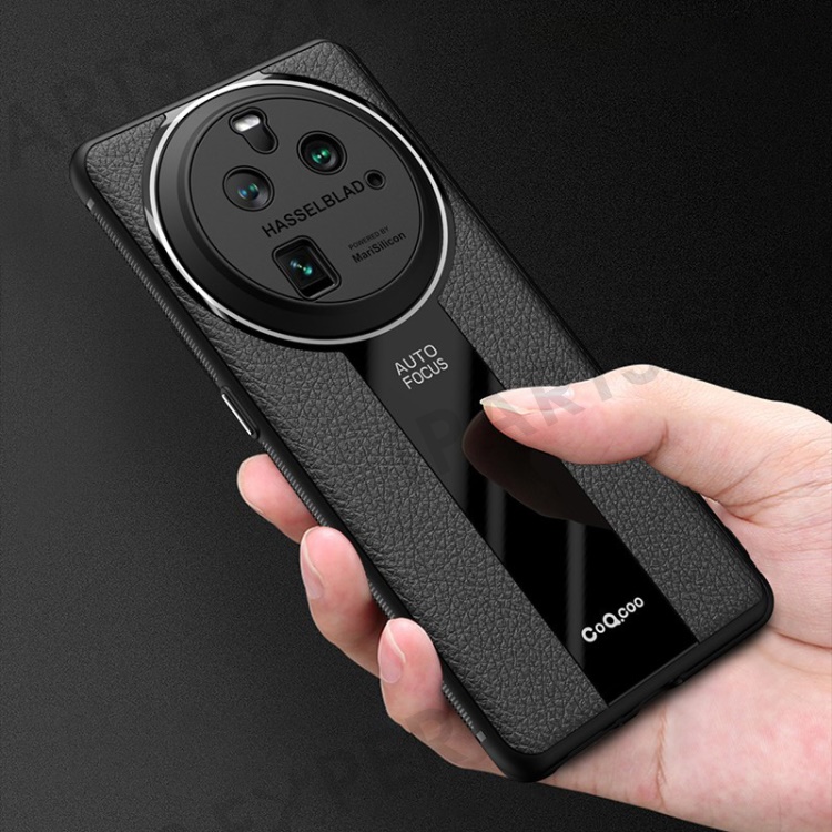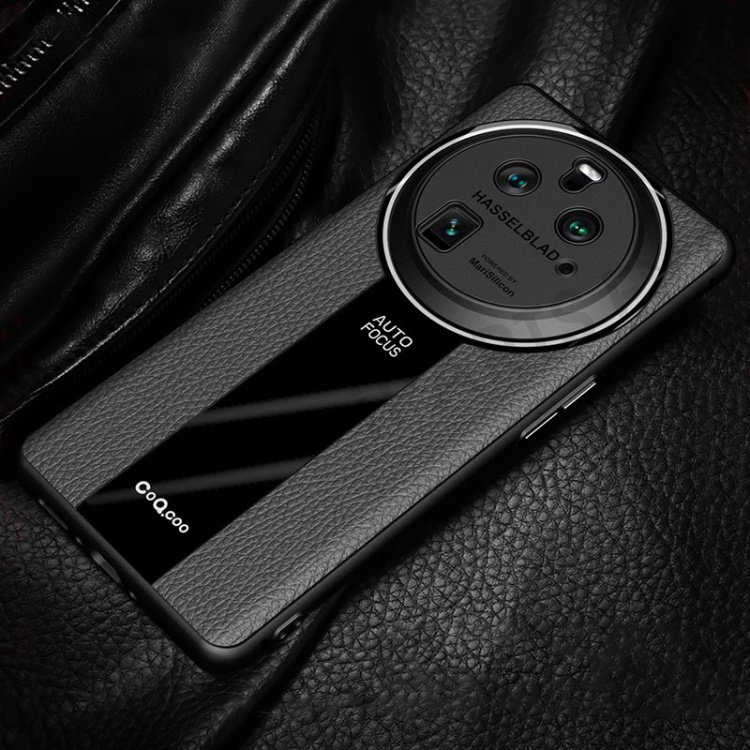 Q.COO For Oppo Find X6 Case Drop-proof PU Leather+TPU+Acrylic Phone Protective Shell - Black