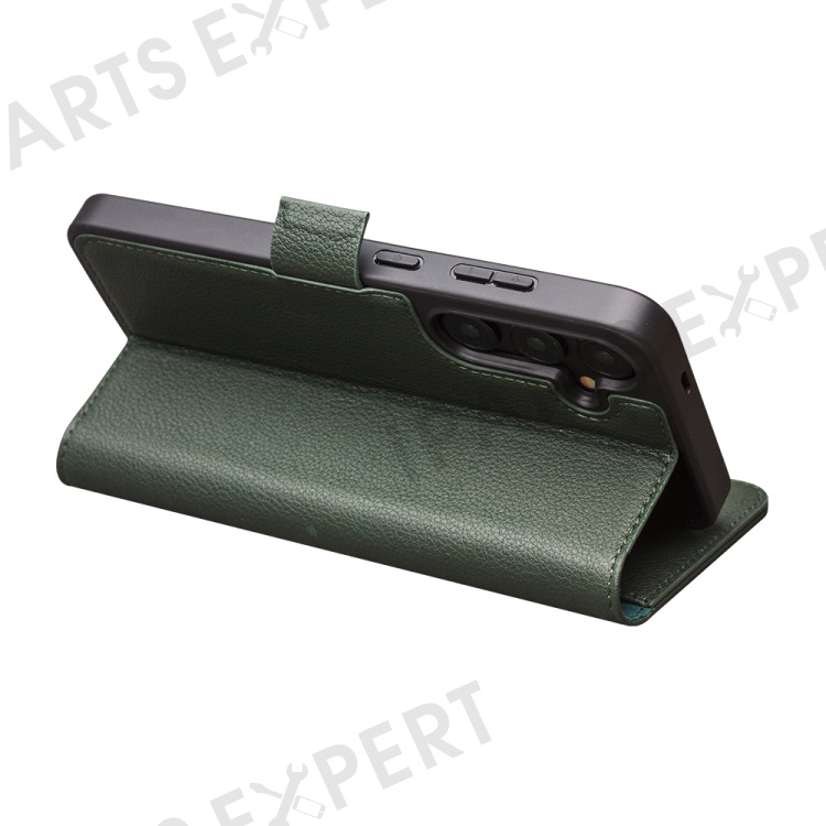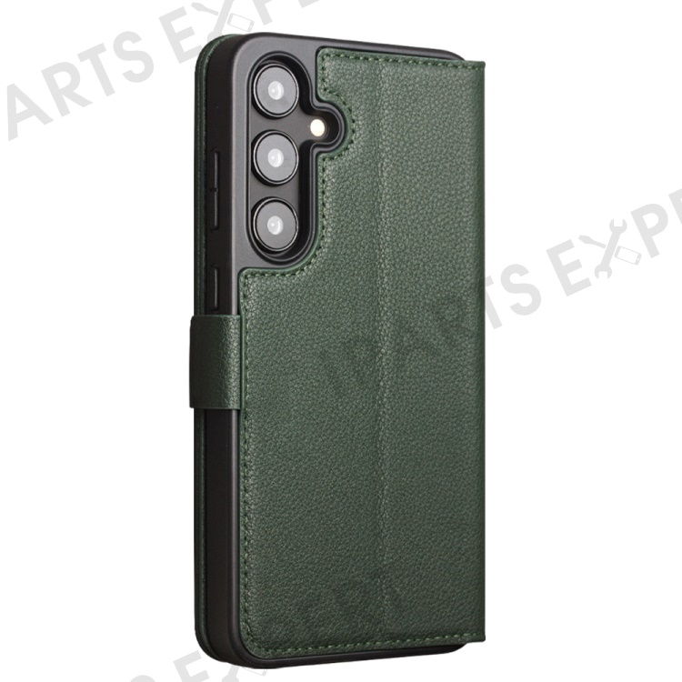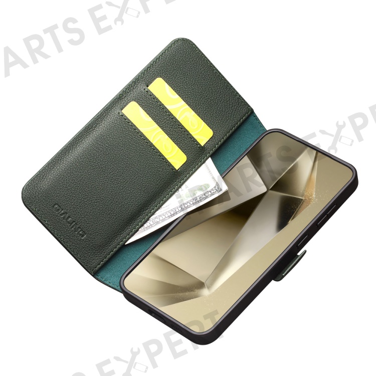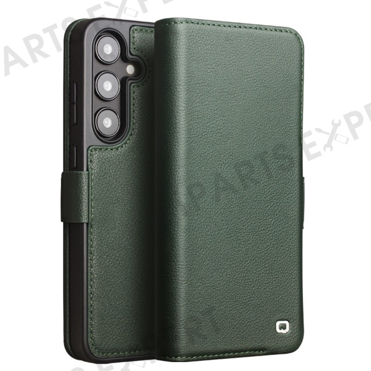 QIALINO For Samsung Galaxy S24+ Magnetic Case Genuine Cow Leather+TPU Anti-drop Cover - Green