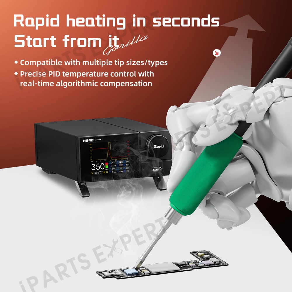 - 【240W High-Power Performance】Equipped with a powerful 240W power supply, the H240 smart soldering station delivers strong and stable output for fast heating and heavy-duty soldering tasks.
