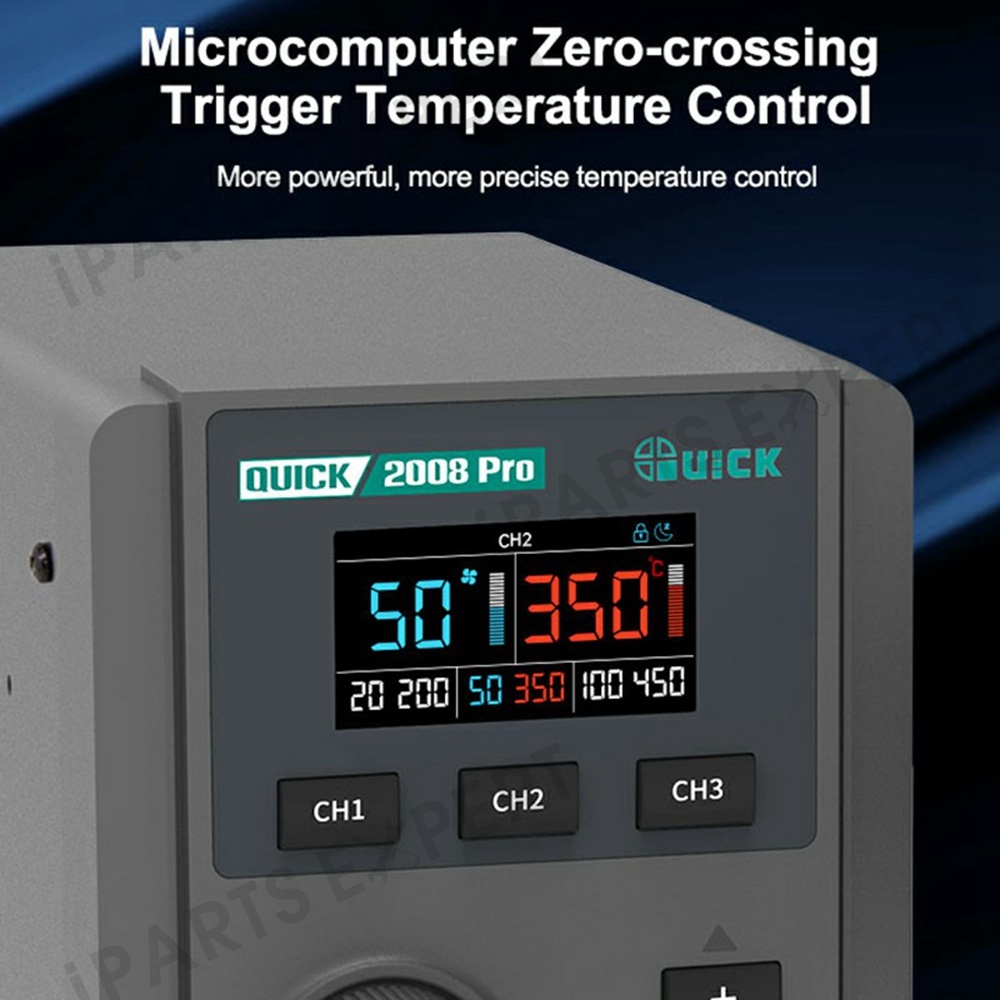 QUICK 2008 Pro Hot Air Gun Desoldering Rework Station Temperature Control LCD Display Desoldering Station - EU Plug