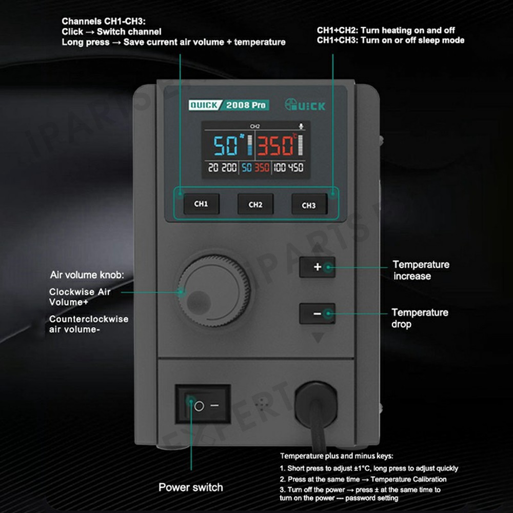 QUICK 2008 Pro Hot Air Gun Desoldering Rework Station Temperature Control LCD Display Desoldering Station - UK Plug