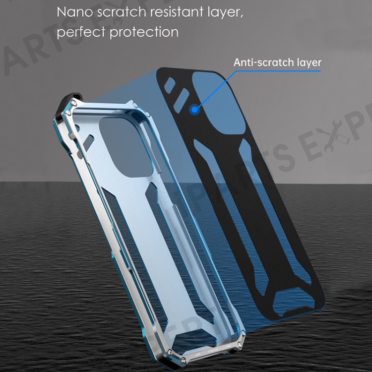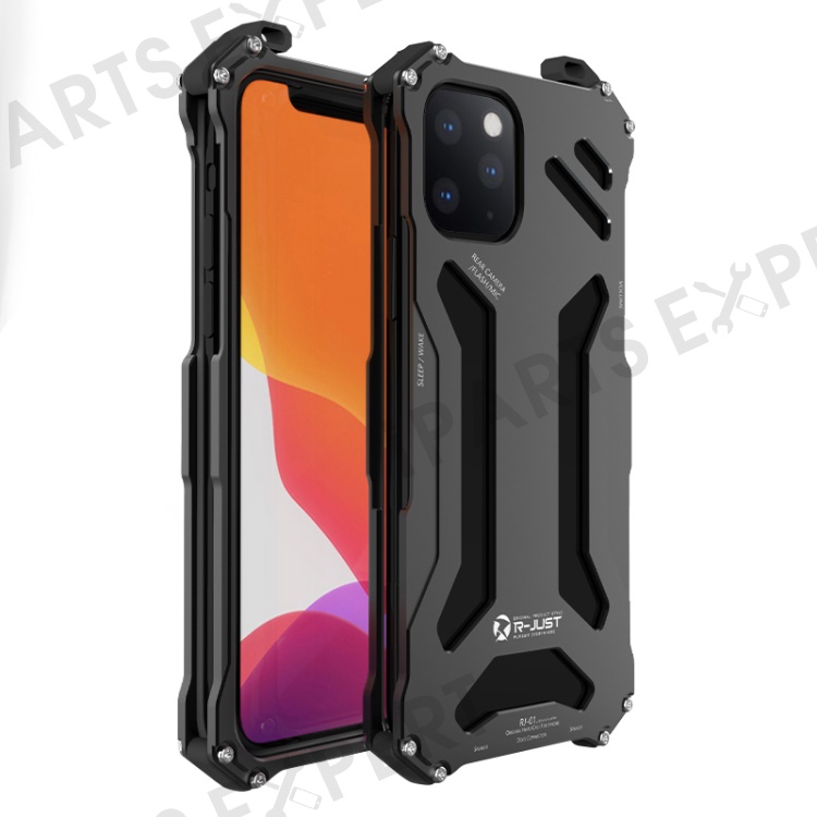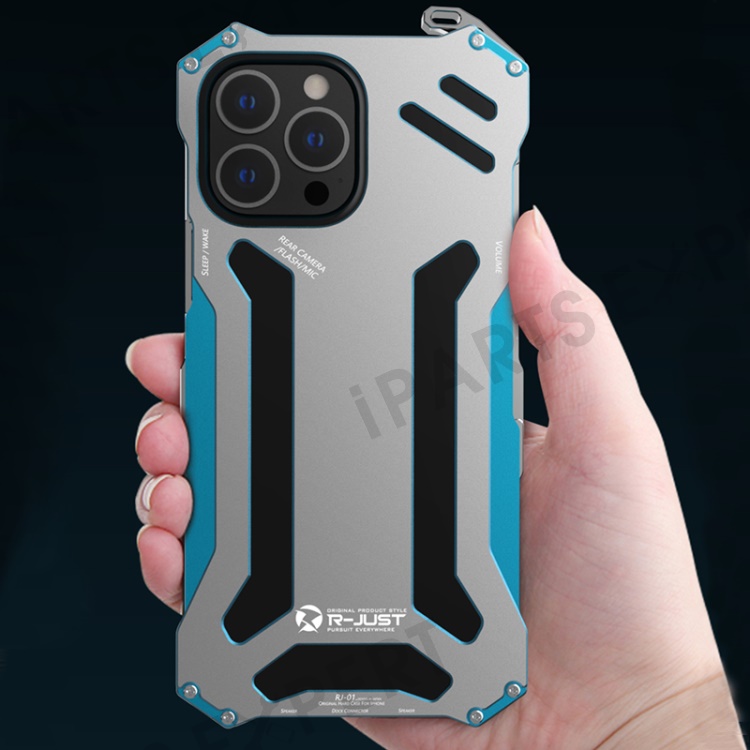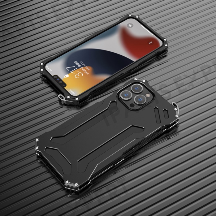 R-JUST Aluminum Alloy Metal Bumper Hollow Rugged Shockproof Cover for iPhone 13 Pro Max 6.7 inch - Black