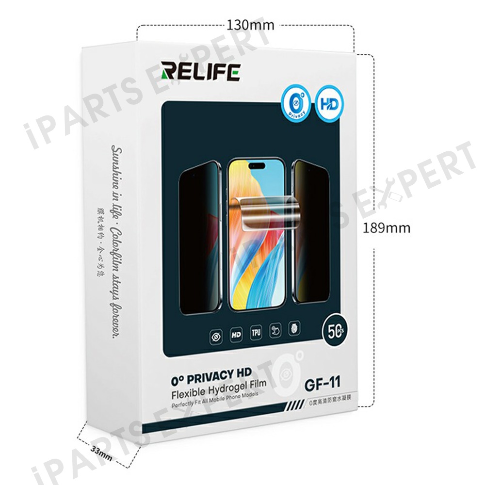 RELIFE GF-11 50Pcs 0 Degree Privacy Hydrogel Film HD Screen Protector for Smartphones Under 7 Inch