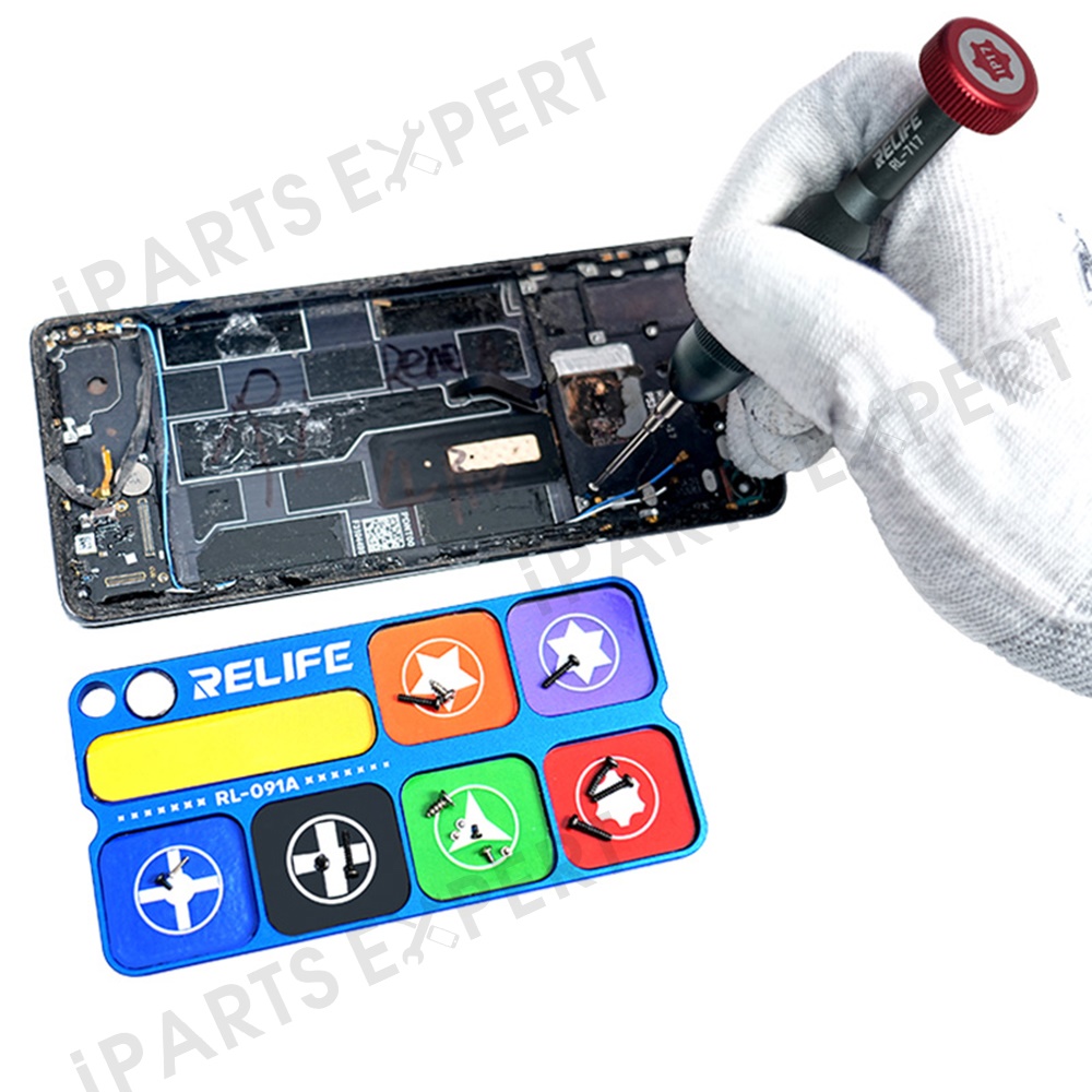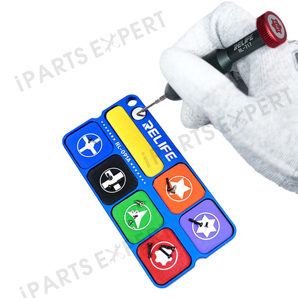 RELIFE RL-091A Magnetic Screws Storage Tray Aluminum Alloy 7-Compartment Organizer for Phone Repair