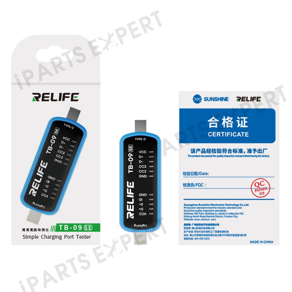 RELIFE TB-09 SE For iPhone / Android Charging Port Tester 8-Pin Type-C Dual Plug Fault Detection