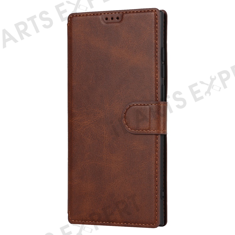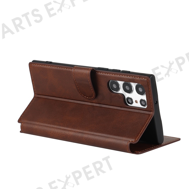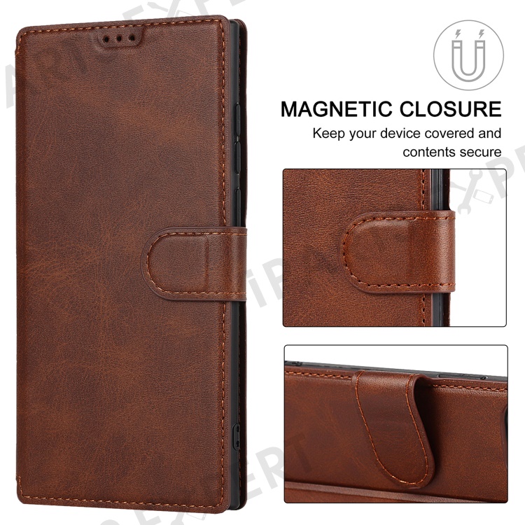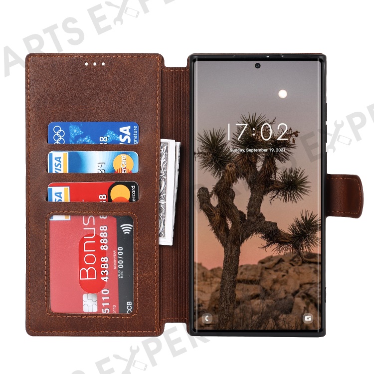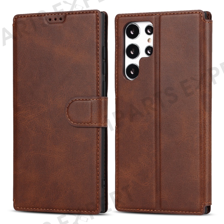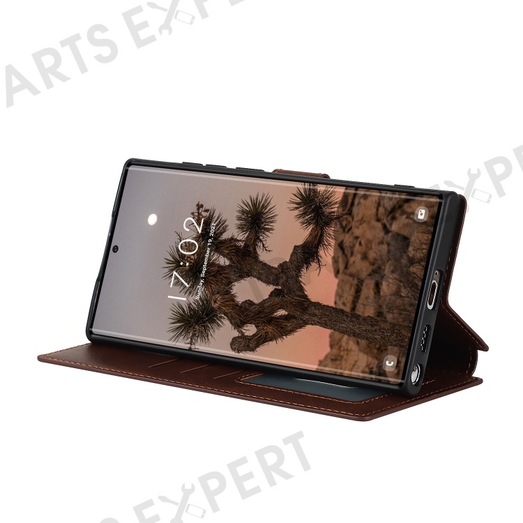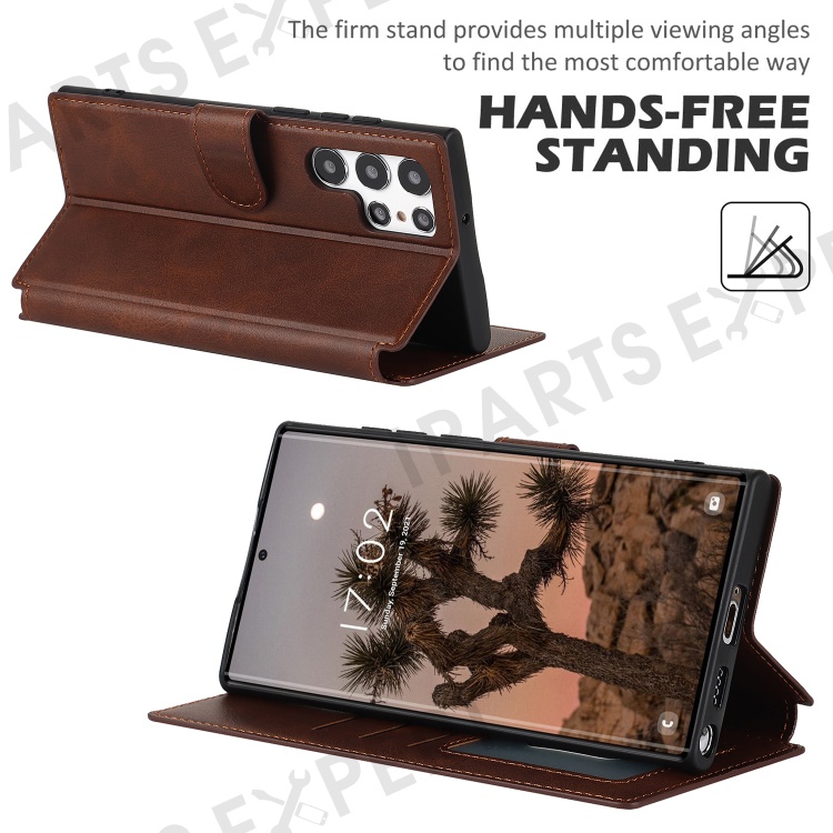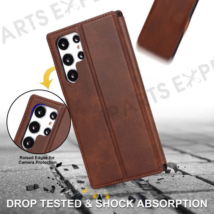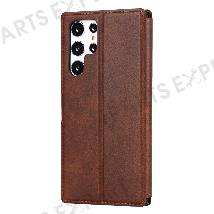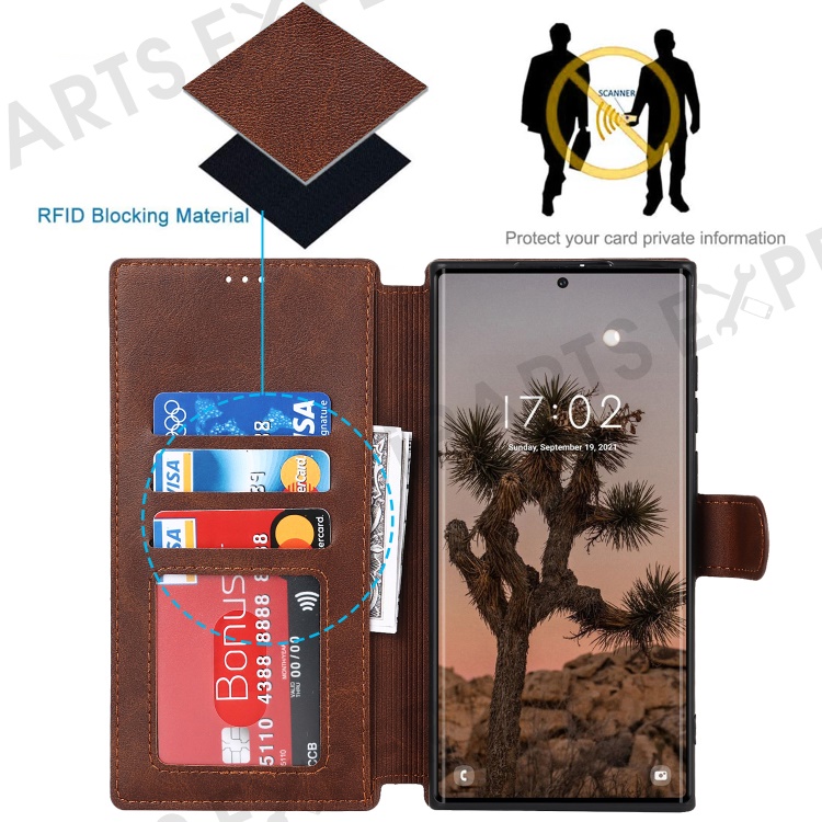 Retro Matte PU Leather Case Wallet Flip Stand TPU Shockproof Cover with RFID Blocking for Samsung Galaxy S22 Ultra 5G - Dark Brown