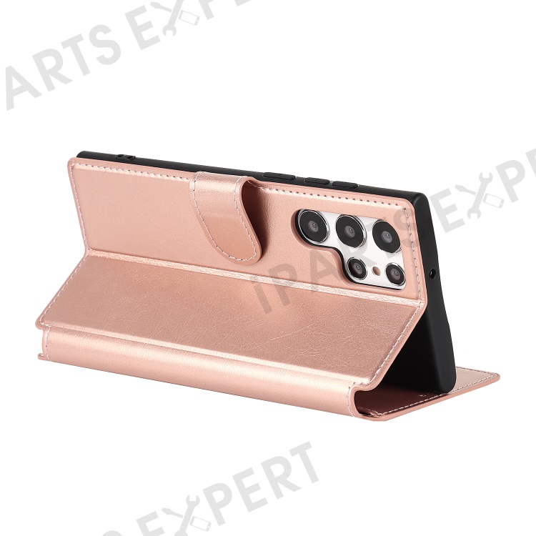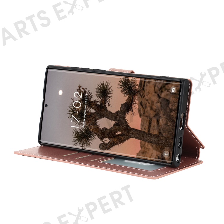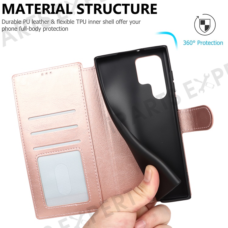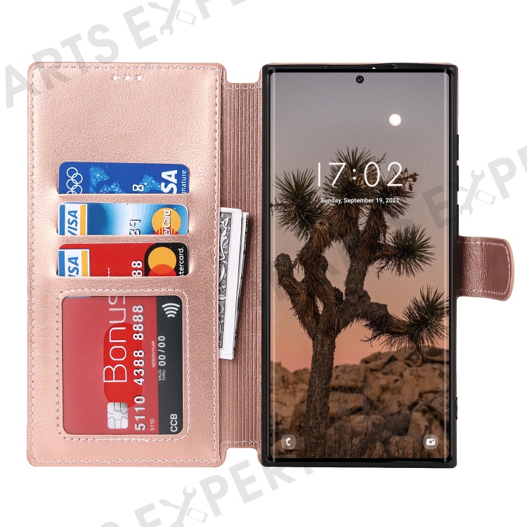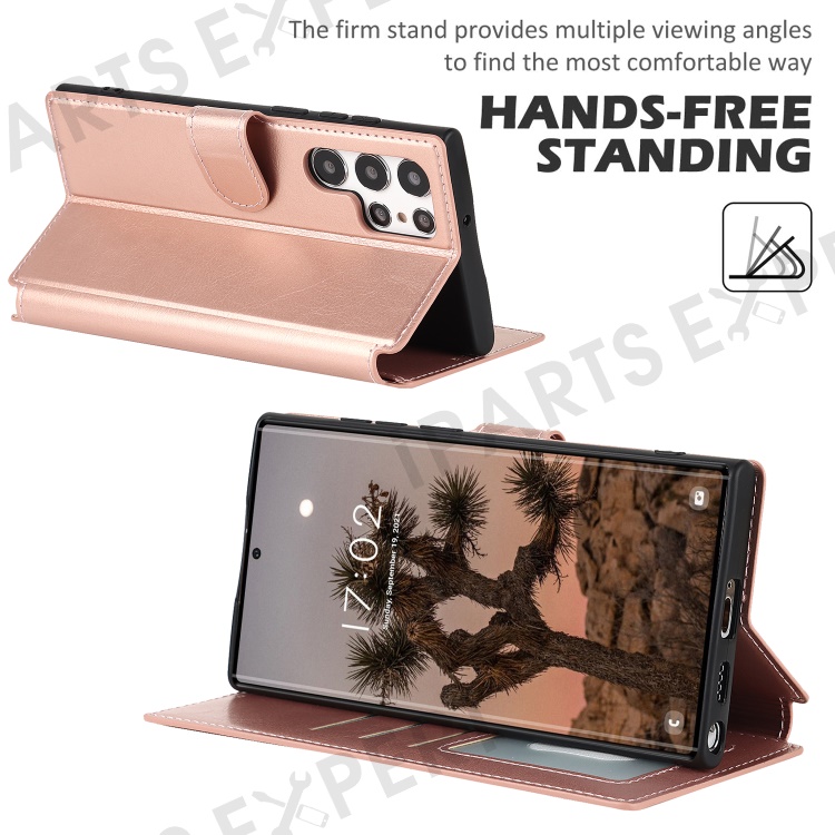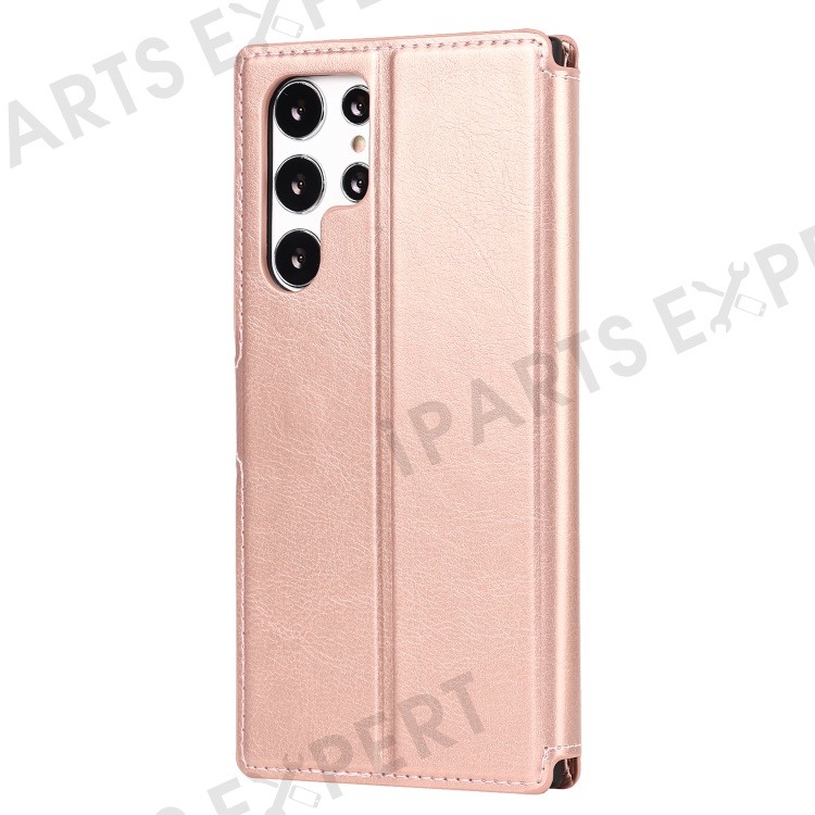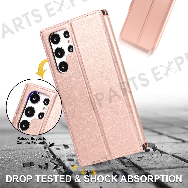 Retro Matte PU Leather Case Wallet Flip Stand TPU Shockproof Cover with RFID Blocking for Samsung Galaxy S22 Ultra 5G - Rose Gold