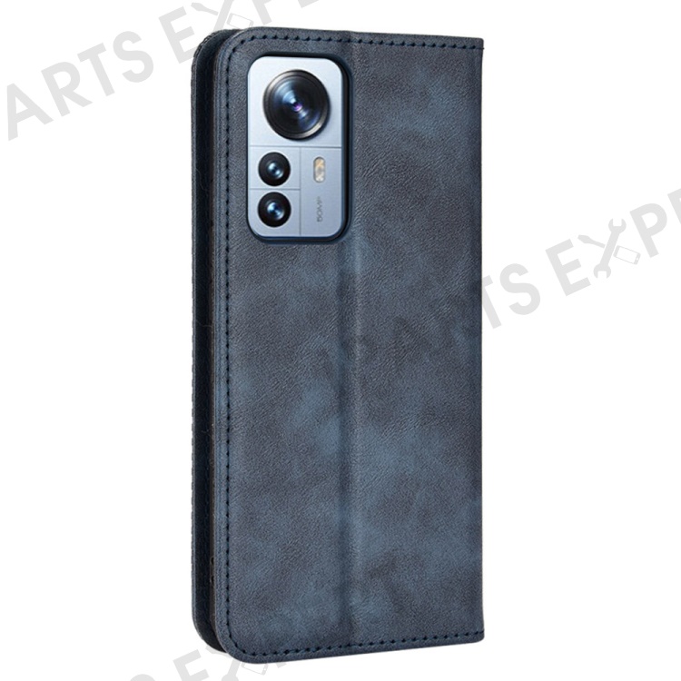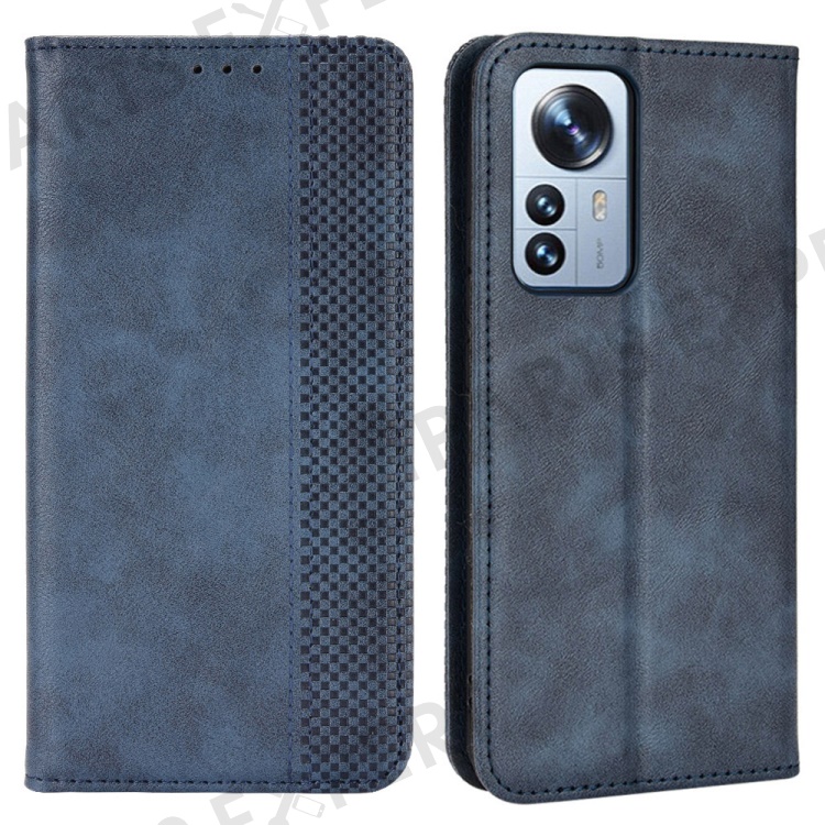 Retro Texture PU Leather Cover for Xiaomi 12 Pro 5G / 12S Pro 5G /12 Pro (Dimensity) 5G, Imprinted Mosaic Wallet Stand Flip Folio Magnetic Absorption Protective Case - Blue