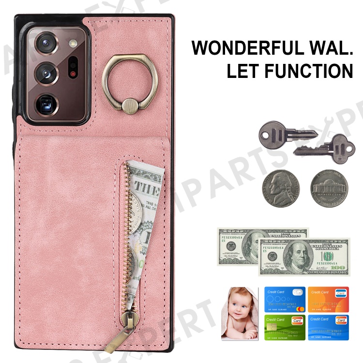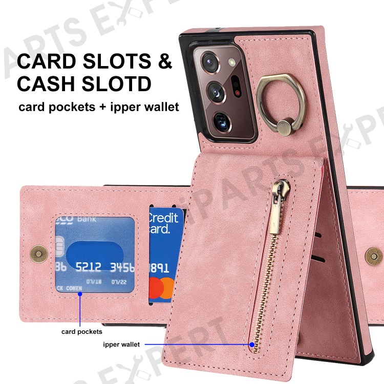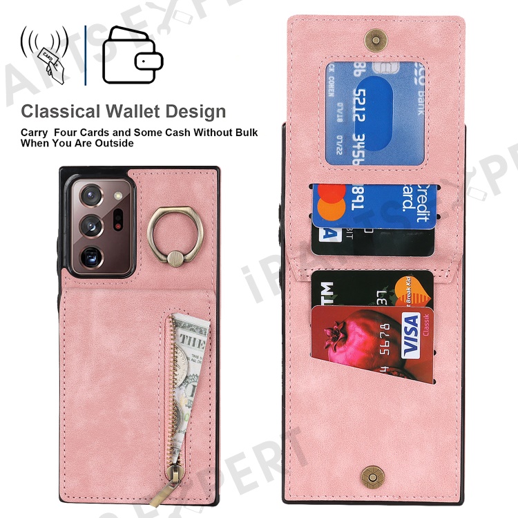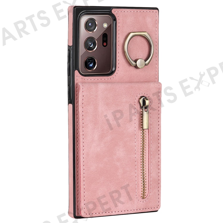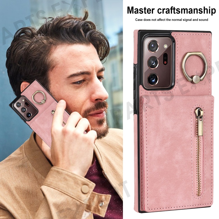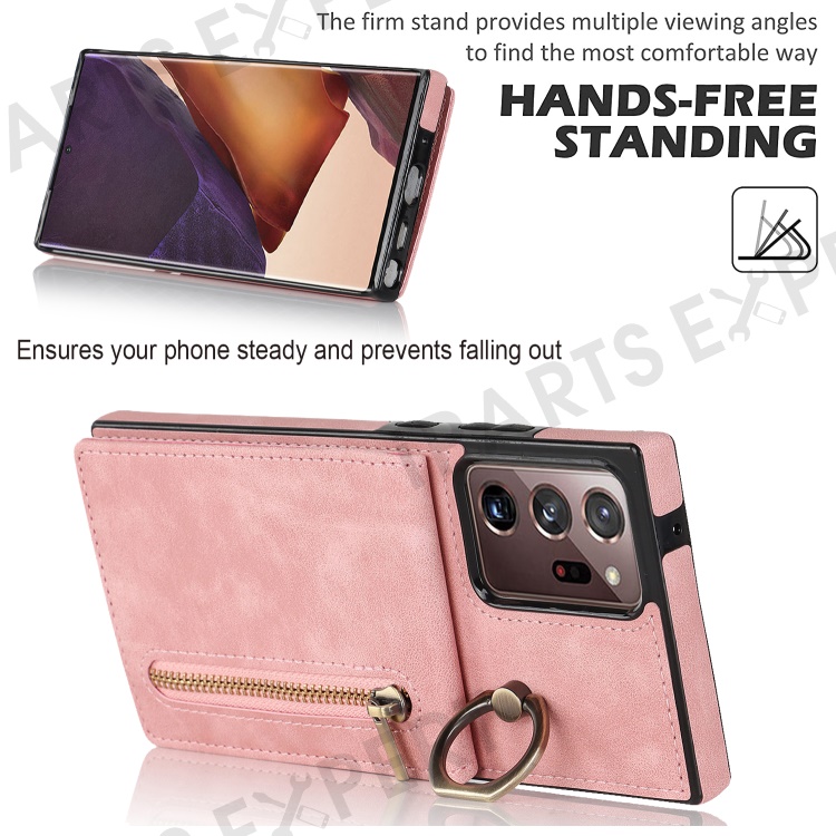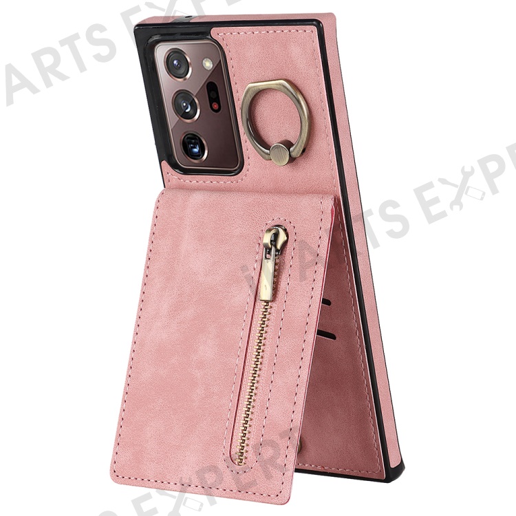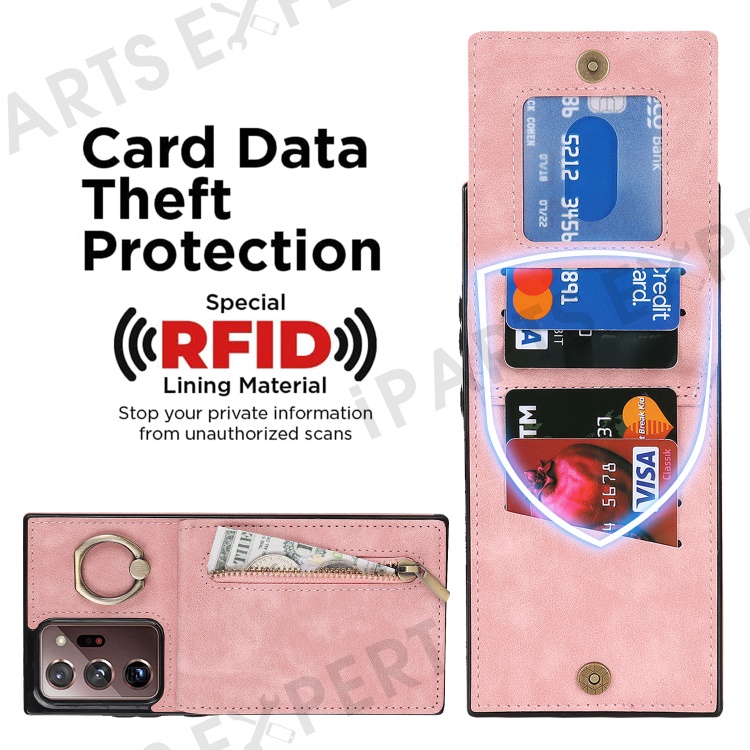 RFID Blocking Phone Case for Samsung Galaxy Note20 Ultra / Note20 Ultra 5G Retro PU+TPU Kickstand Cover with Zippered Wallet - Pink