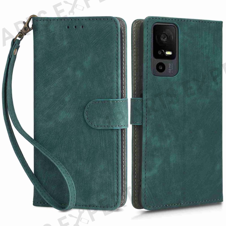 RFID Blocking Wallet Cover for TCL 40 XE / 40 X T601D / NxtPaper 5G , PU Leather Stand Phone Case with Strap - Green