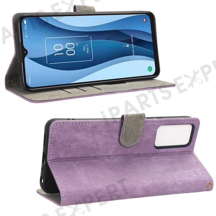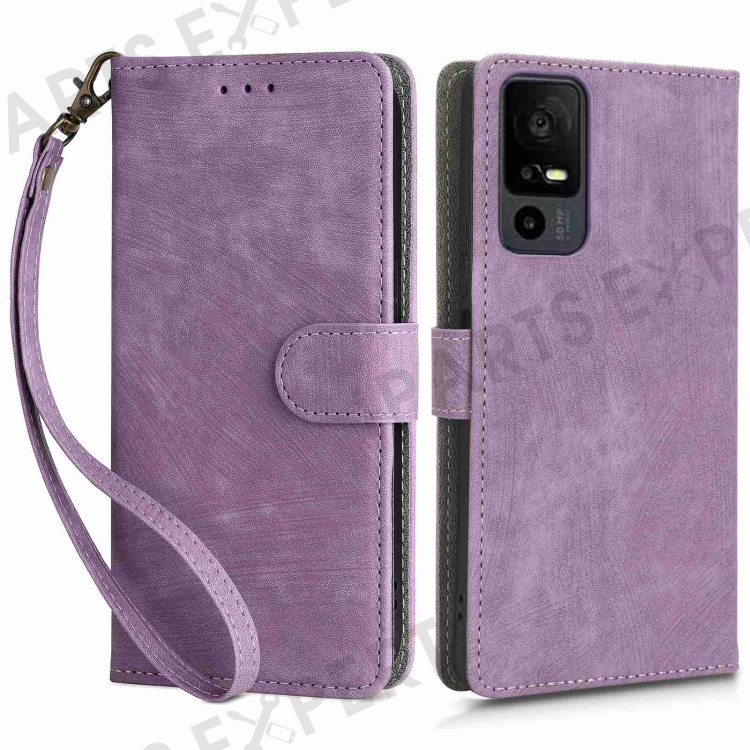 RFID Blocking Wallet Cover for TCL 40 XE / 40 X T601D / NxtPaper 5G , PU Leather Stand Phone Case with Strap - Purple