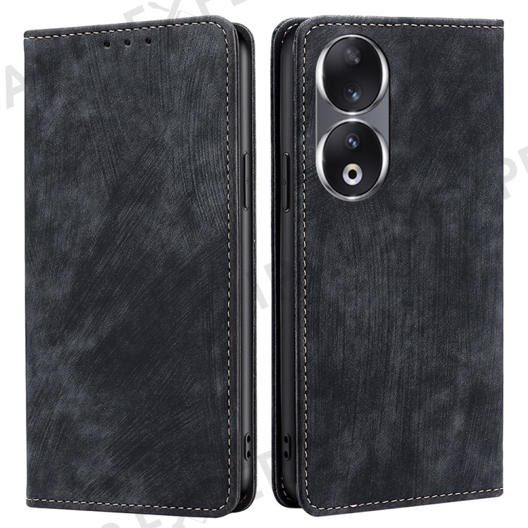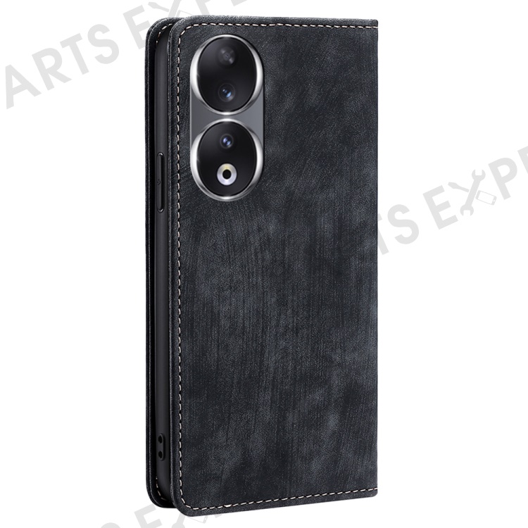 RFID Blocking Wallet Phone Case for Honor 90 , PU Leather Stand Full Protection Cover - Black
