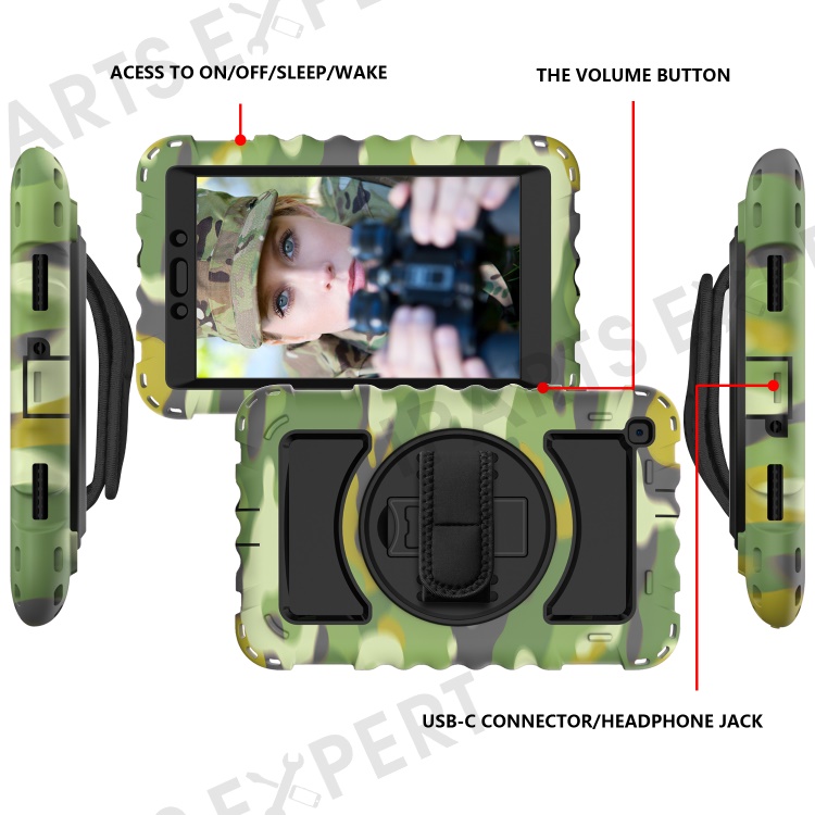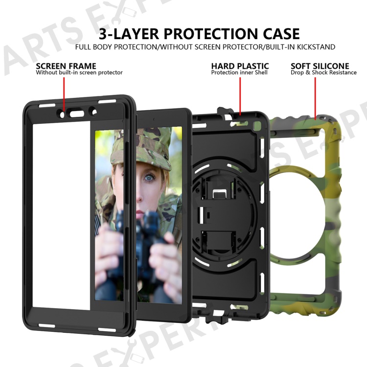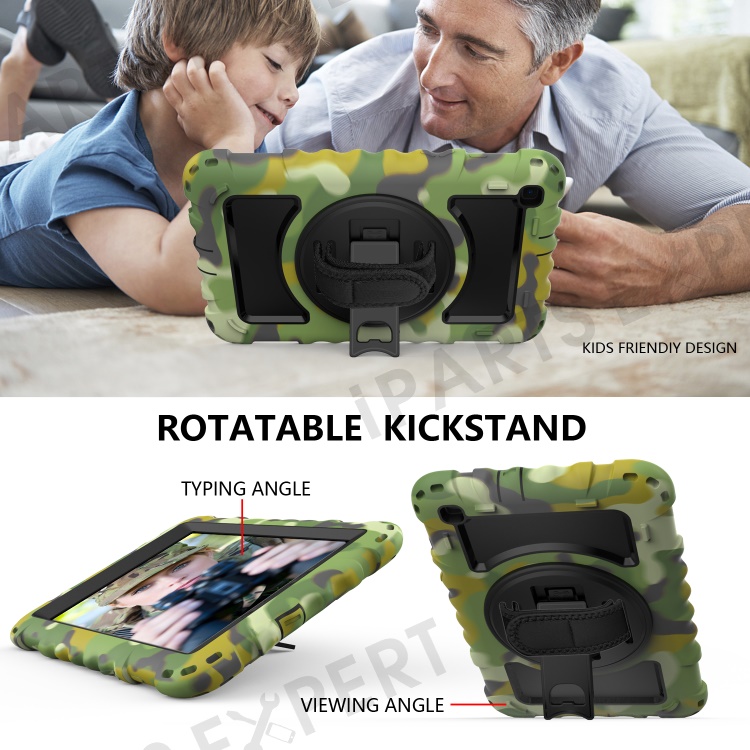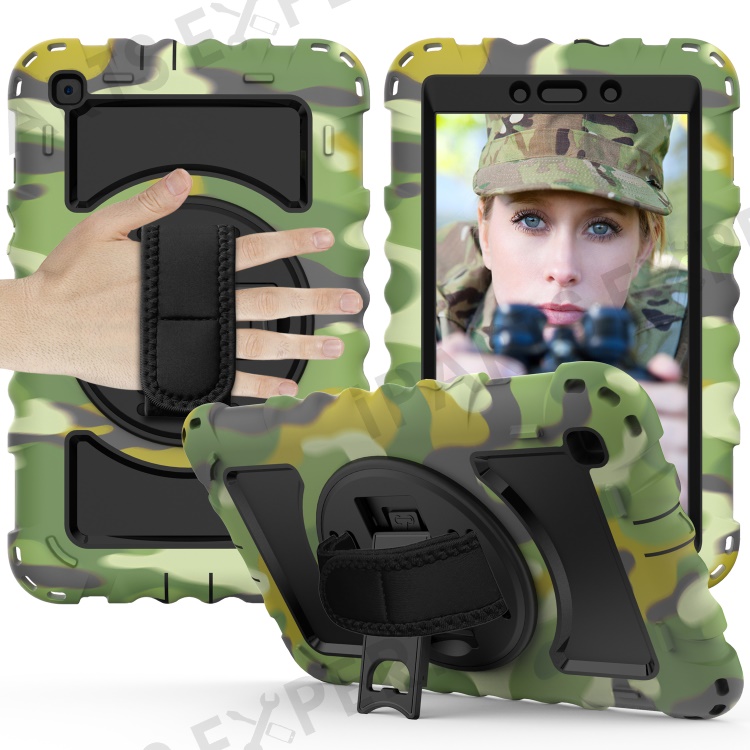 Rotating Kickstand Cover for Samsung Galaxy Tab A 8.0 (2019) SM-T290 (Wi-Fi) / SM-T295 (LTE) / SM-T297, Silicone+PC Rugged Protective Tablet Case - Camouflage