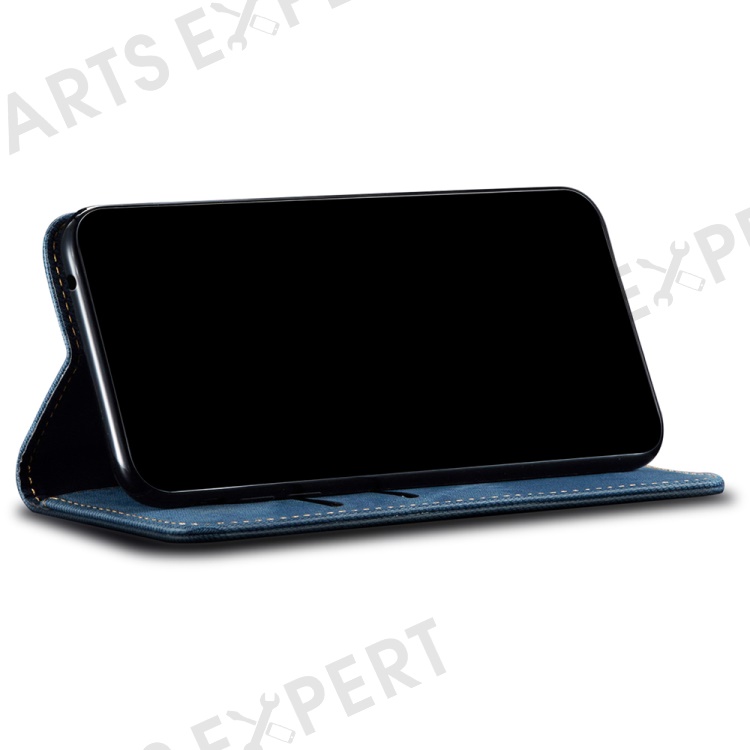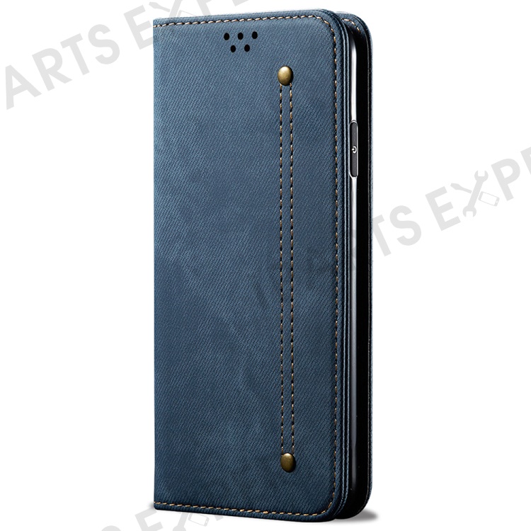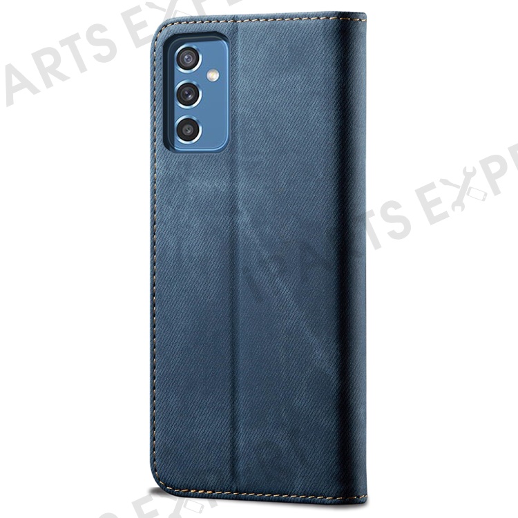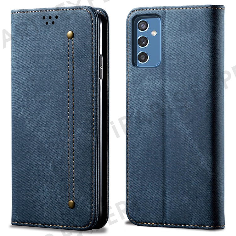 Scratch Resistant Flip Phone Cover Jeans Cloth Texture Leather Wallet Stand Case for Samsung Galaxy M52 5G - Blue