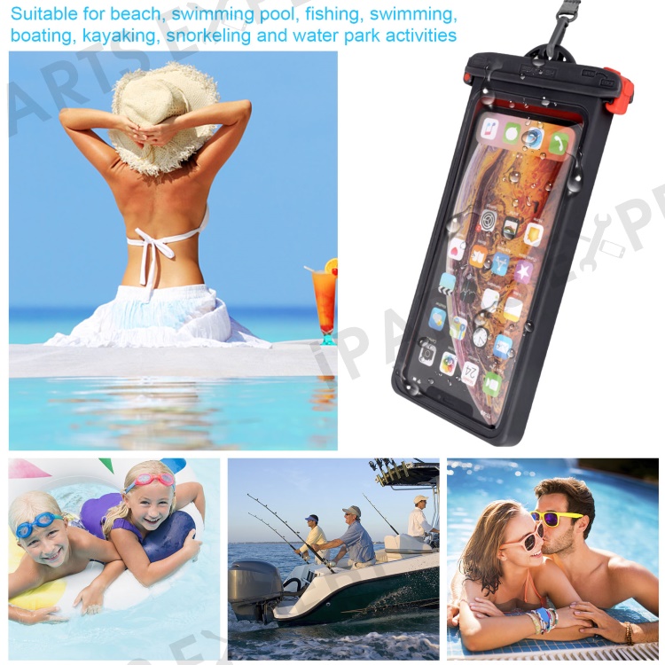 - External dimension: 18.5*9m*1.3cm, internal dimension: 17*8.5*0.9cm, suitable for most smartphones up to 6.9 inches. This waterproof dry bag is suitable for beach, swimming pool, fishing, swimming, boating, kayaking, snorkeling and water park activities