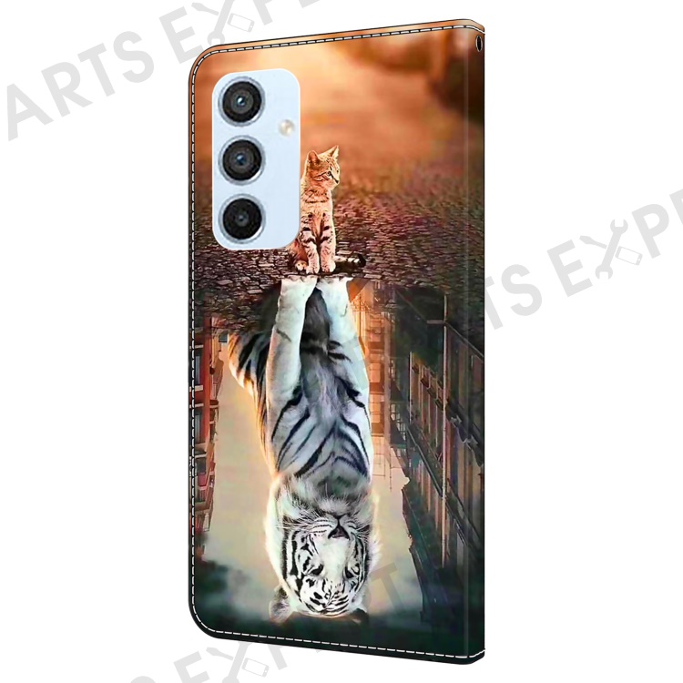 Shockproof Case for Samsung Galaxy A54 5G Case Pattern Printing Leather Wallet Phone Cover - Cat and Tiger