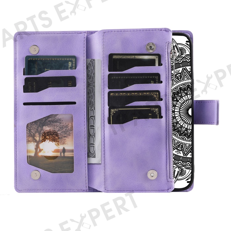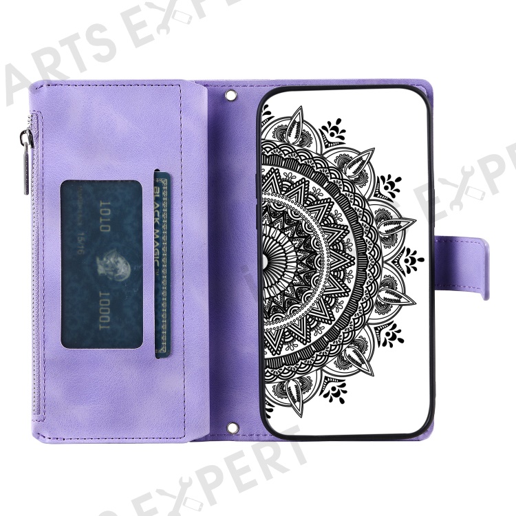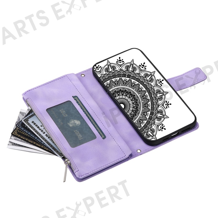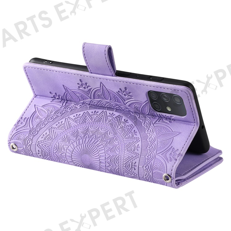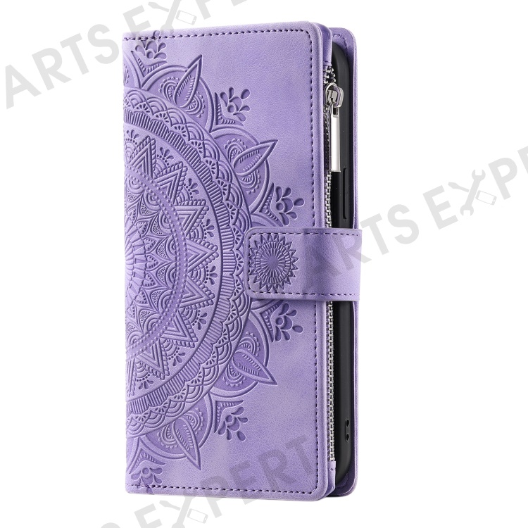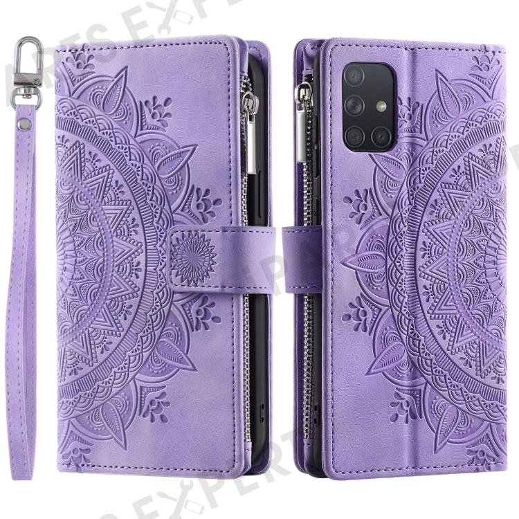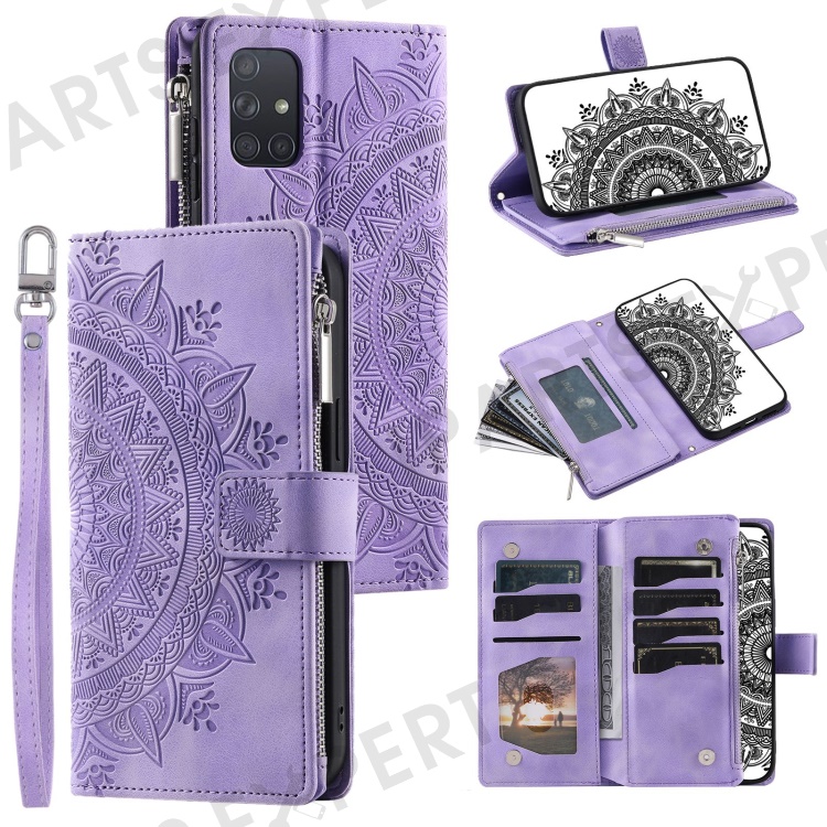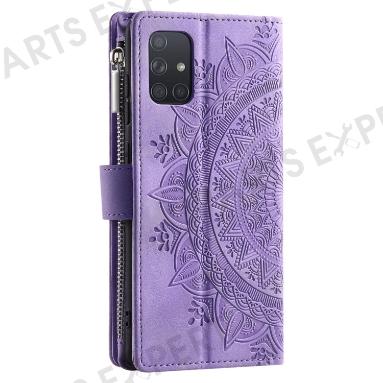 Shockproof Case for Samsung Galaxy A71 4G SM-A715 Multi Card Slot Phone Case Mandala Flower Imprinted PU Leather Cover with Zippered Wallet / Strap - Purple