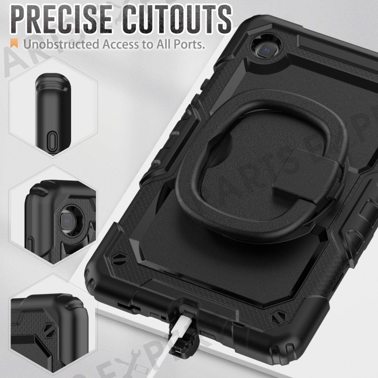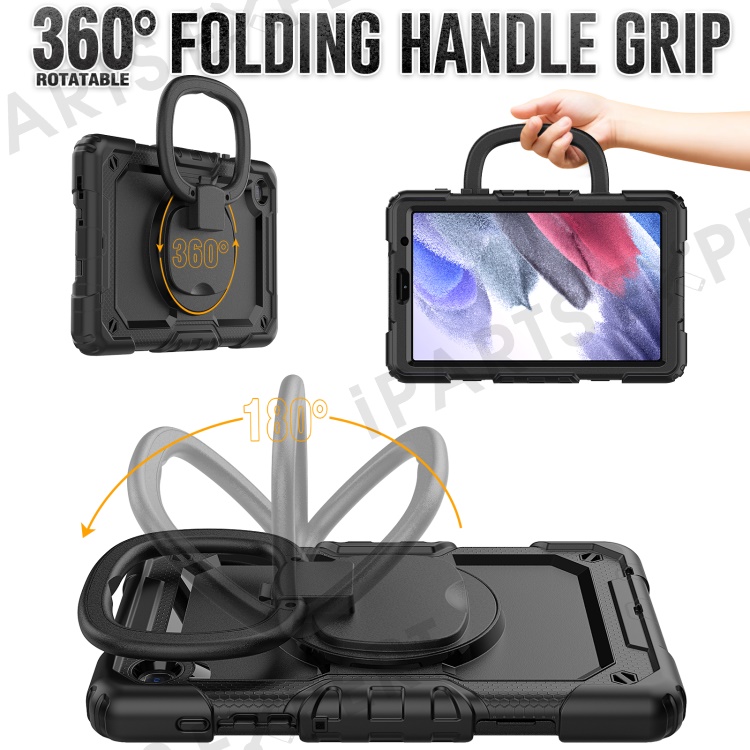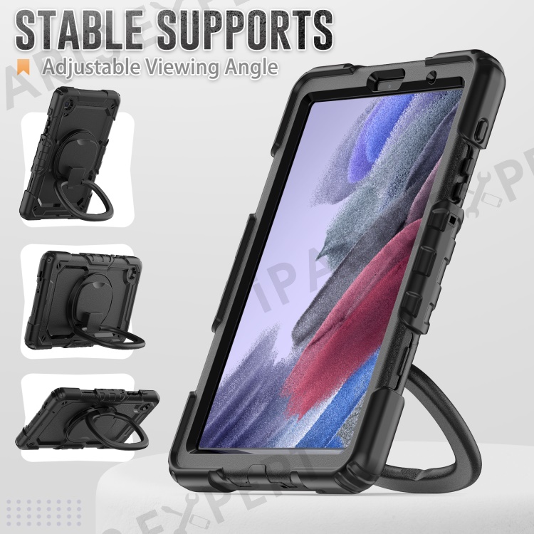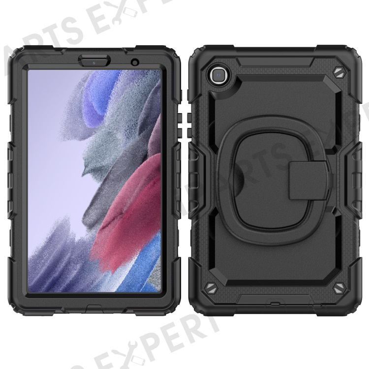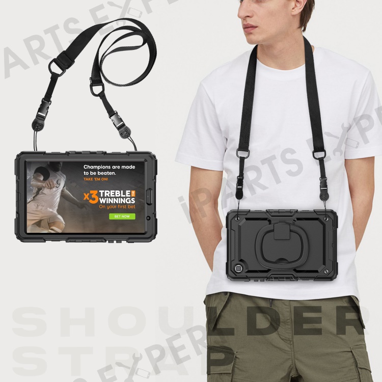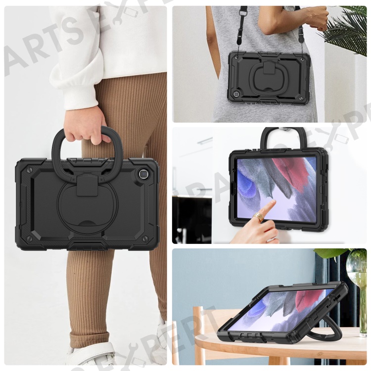 Shockproof Case for Samsung Galaxy Tab A7 Lite 8.7-inch T220 / T225, Drop-proof Tablet Case 360-Degree Rotating Kickstand PC + Silicone Cover with Shoulder Strap - Black