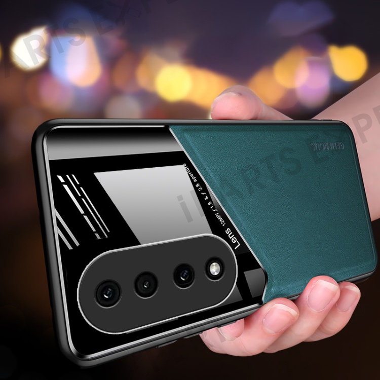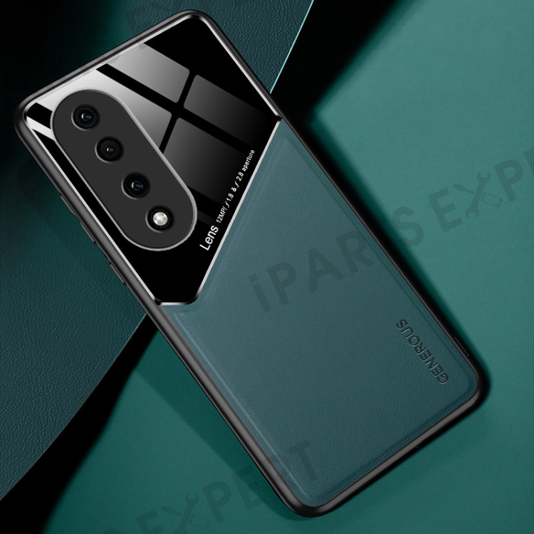 Shockproof Cover for Honor 90 Pro PU Leather Coated TPU+PC Phone Case with Car Mount Metal Sheet - Green