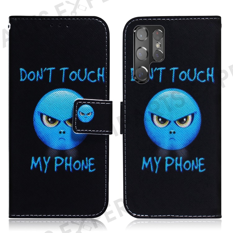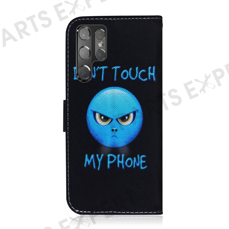 Shockproof Pattern Printing Stand Flip Magnetic Closure Protection PU Leather Wallet Case Cover for Samsung Galaxy S22 Ultra 5G - Don't Touch My Phone