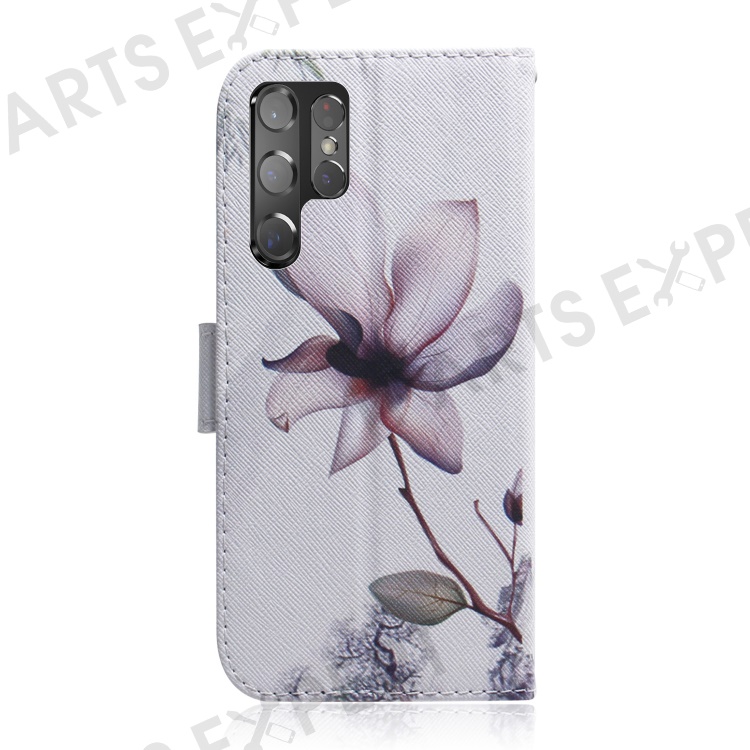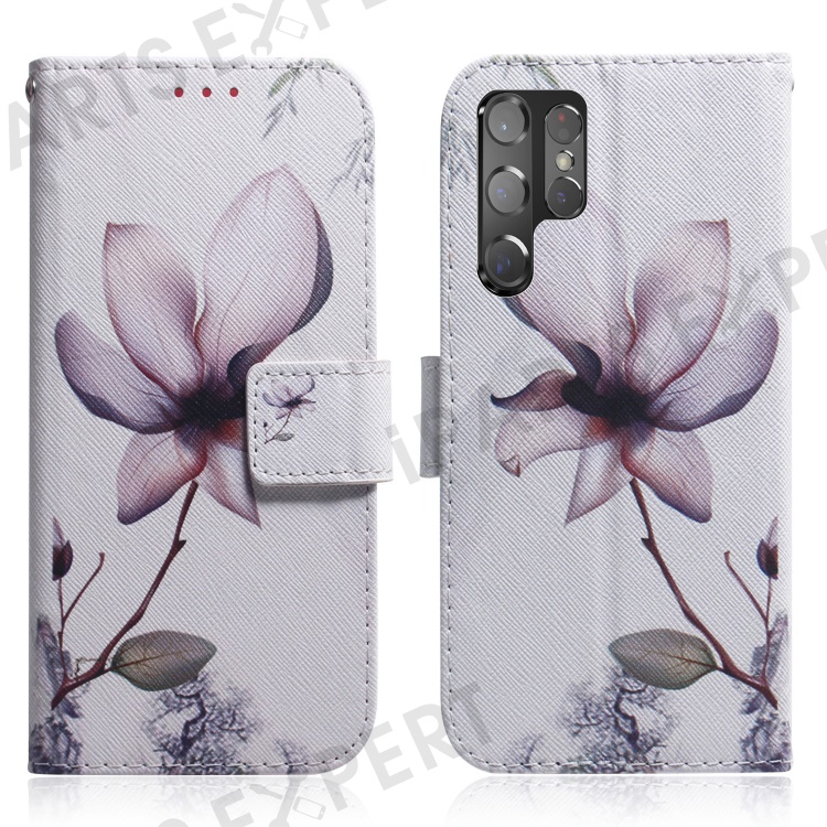 Shockproof Pattern Printing Stand Flip Magnetic Closure Protection PU Leather Wallet Case Cover for Samsung Galaxy S22 Ultra 5G - Magnolia Flower