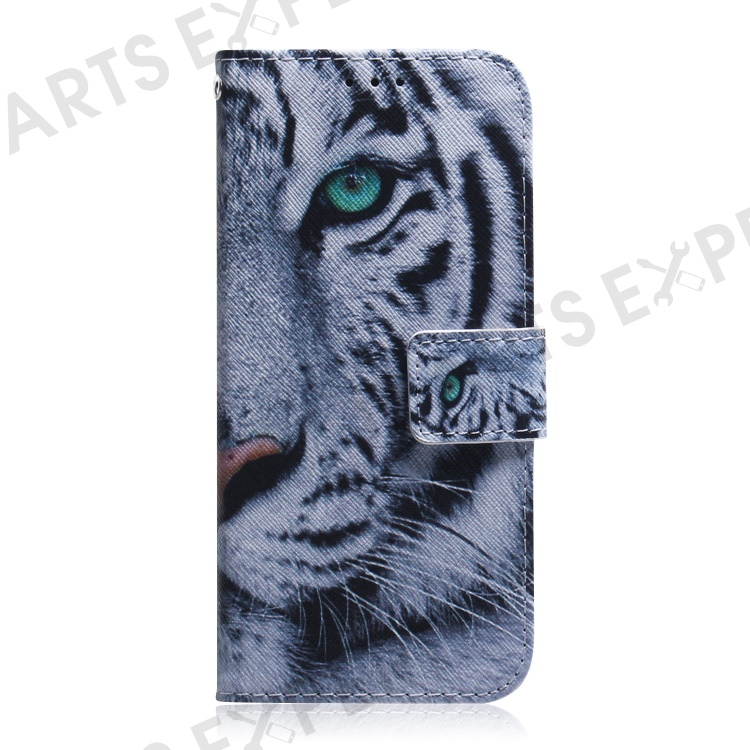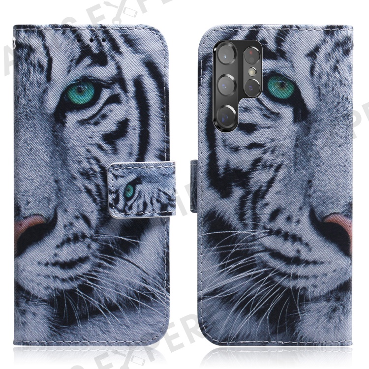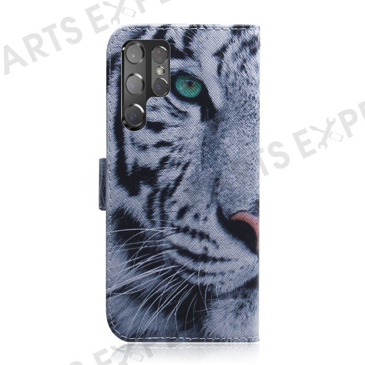 Shockproof Pattern Printing Stand Flip Magnetic Closure Protection PU Leather Wallet Case Cover for Samsung Galaxy S22 Ultra 5G - Tiger Head
